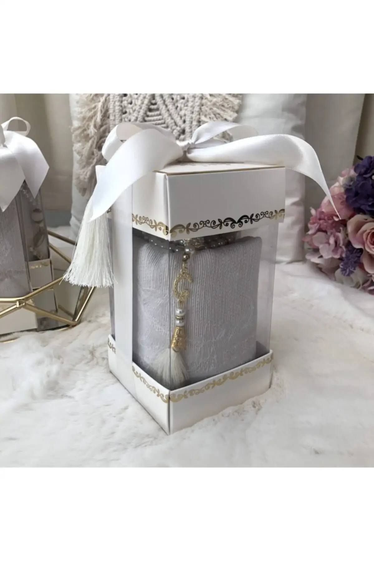 - Cotton Taffeta Prayer Rug and 99 Design Pearl Rosary in a Box