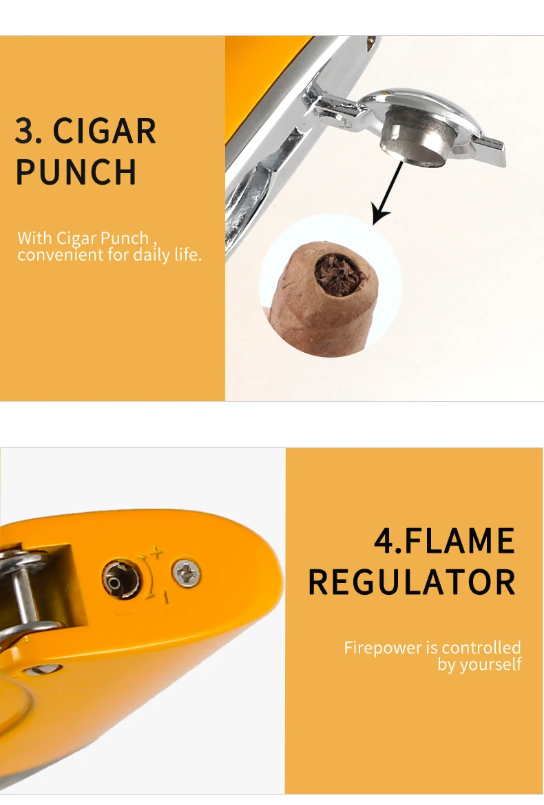 3 Jet Torch Flamme Zigarrenfeuerzeug scharfe Zigarrenschneider Set Metallfeuerzeuge rostfreie Schneider tragbare Gadgets mit Zigarrenstanze