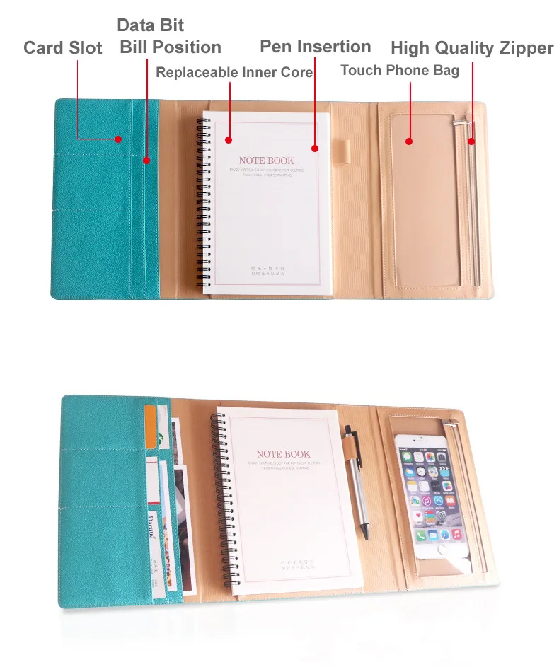 Dieses Notizbuch kann Handy, Stifte hineinlegen. Sehr gute Qualität!