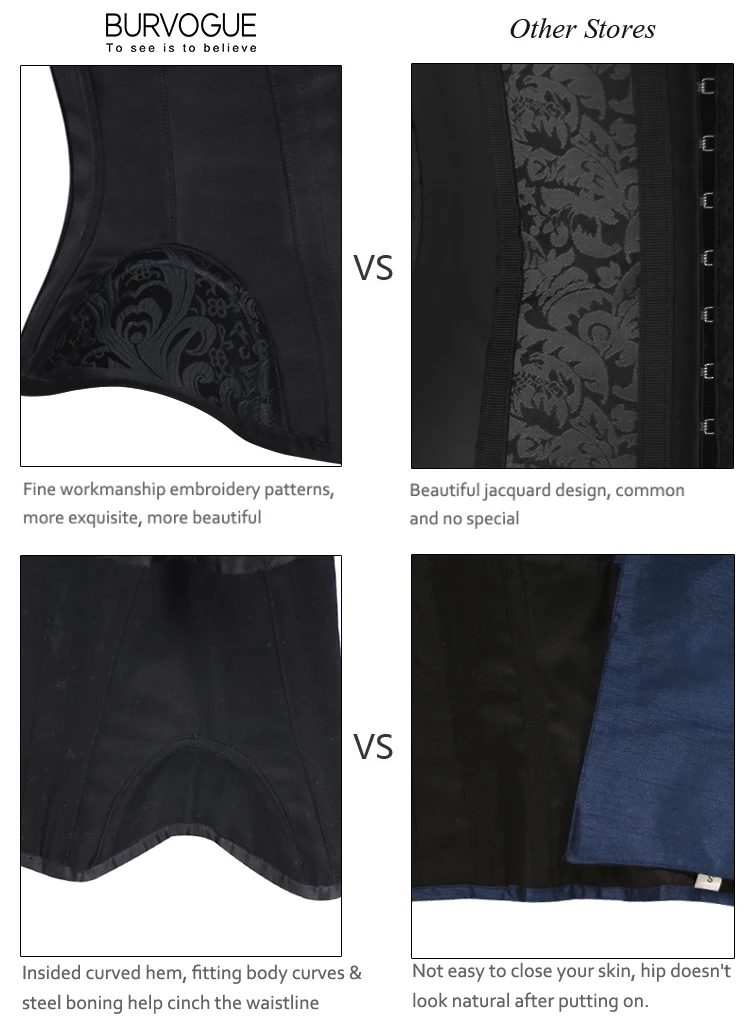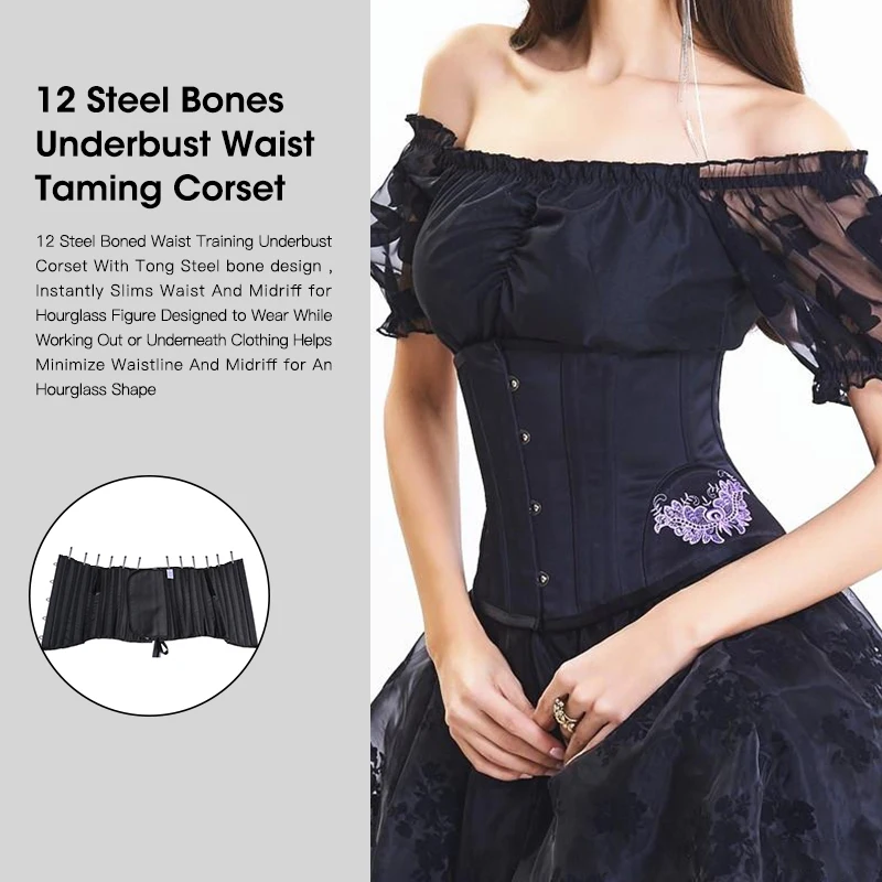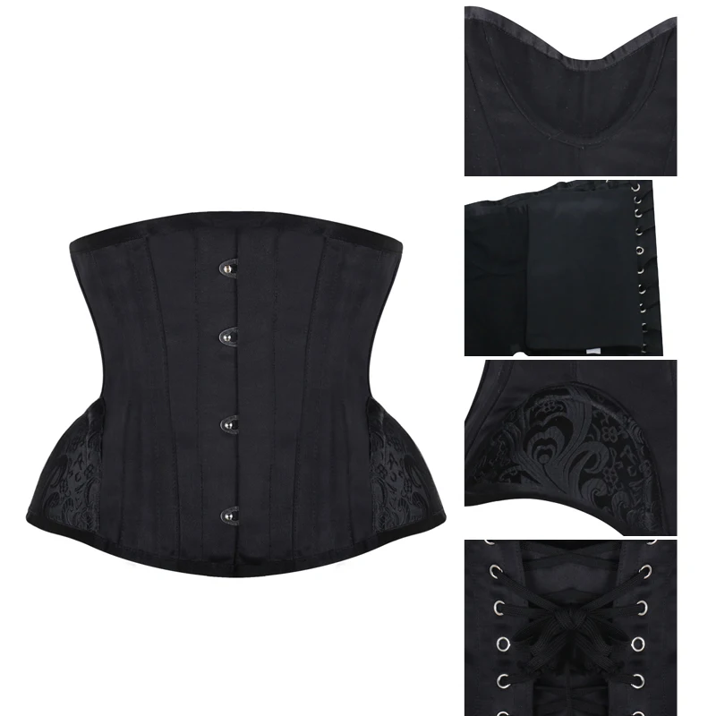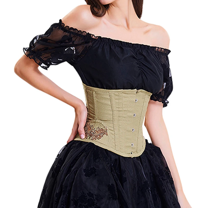 Burvogue Gothic Embroidery Waist Trainer Short Torso Corset 12 Steel Bones Women's Slimming Binder and Shaper Underbust Corsets