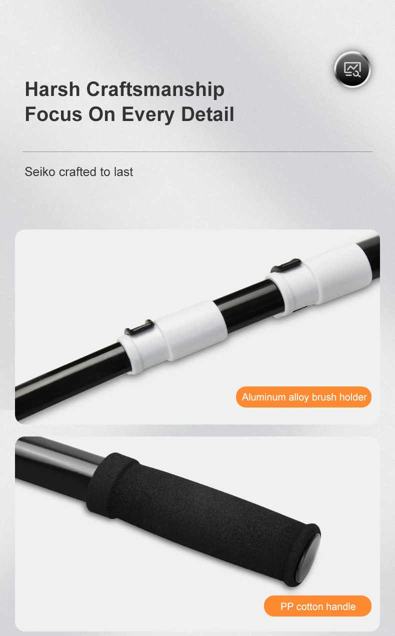 Material: brush rod (aluminum alloy), telescopic (lock ABS), brush plate (Engineering polypropylene), brush hair (chenille polyester)