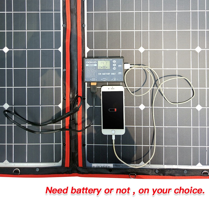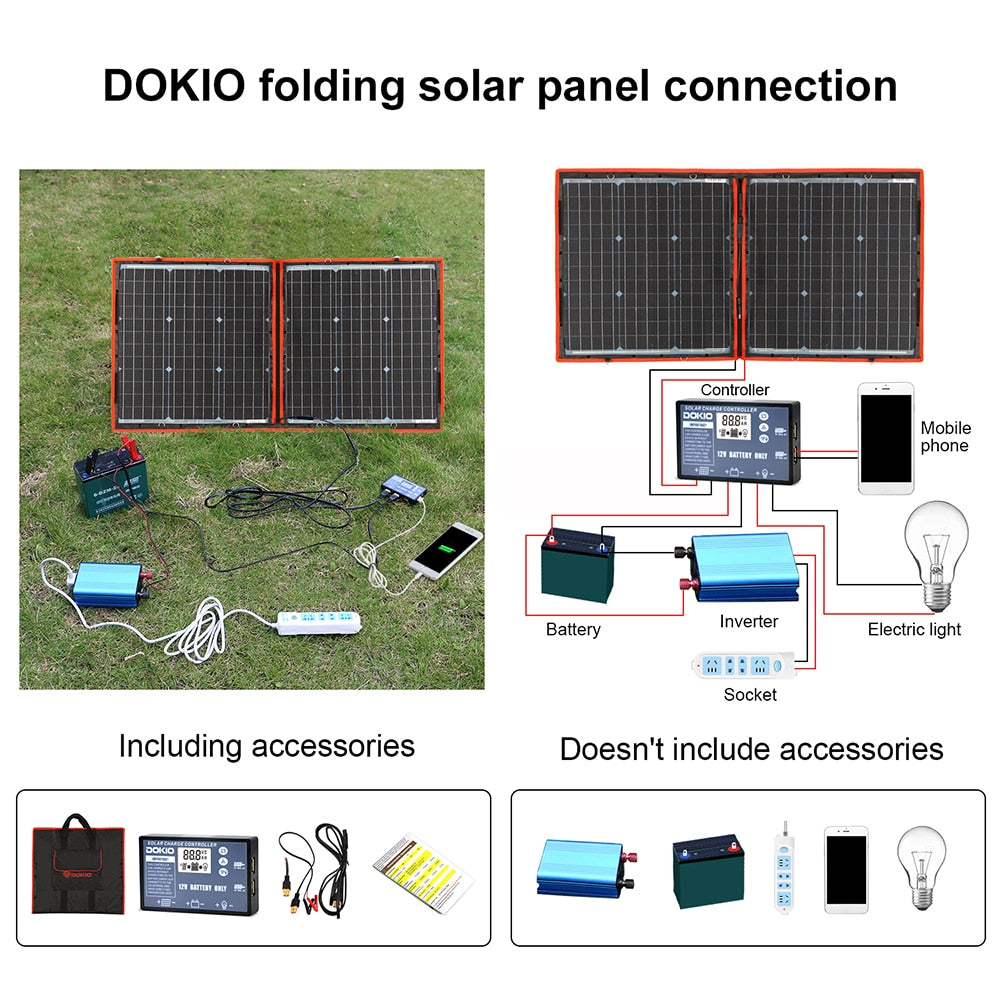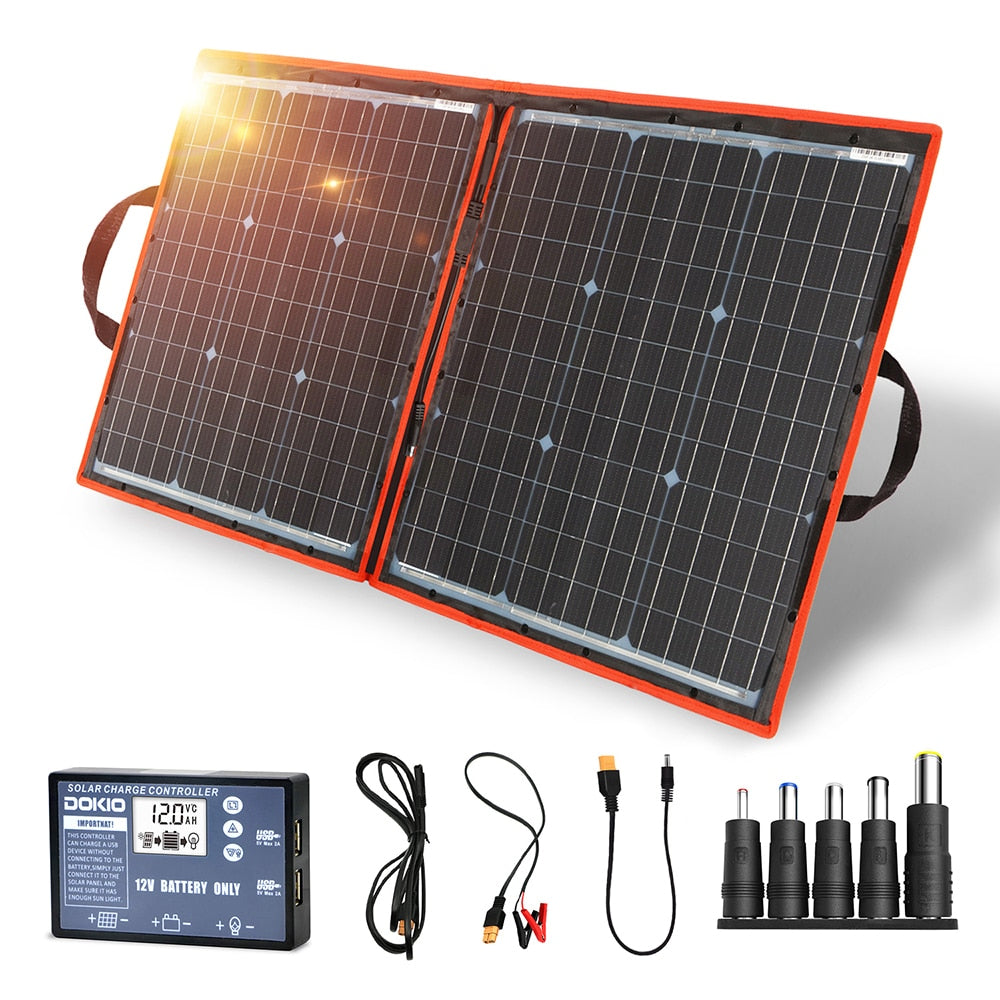 Dokio 80W Solarpanel 18V Flexibles faltbares Solarpanel USB Tragbares Solarzellen-Kit für Boote/Camping-Solarpanel im Freien 12V
