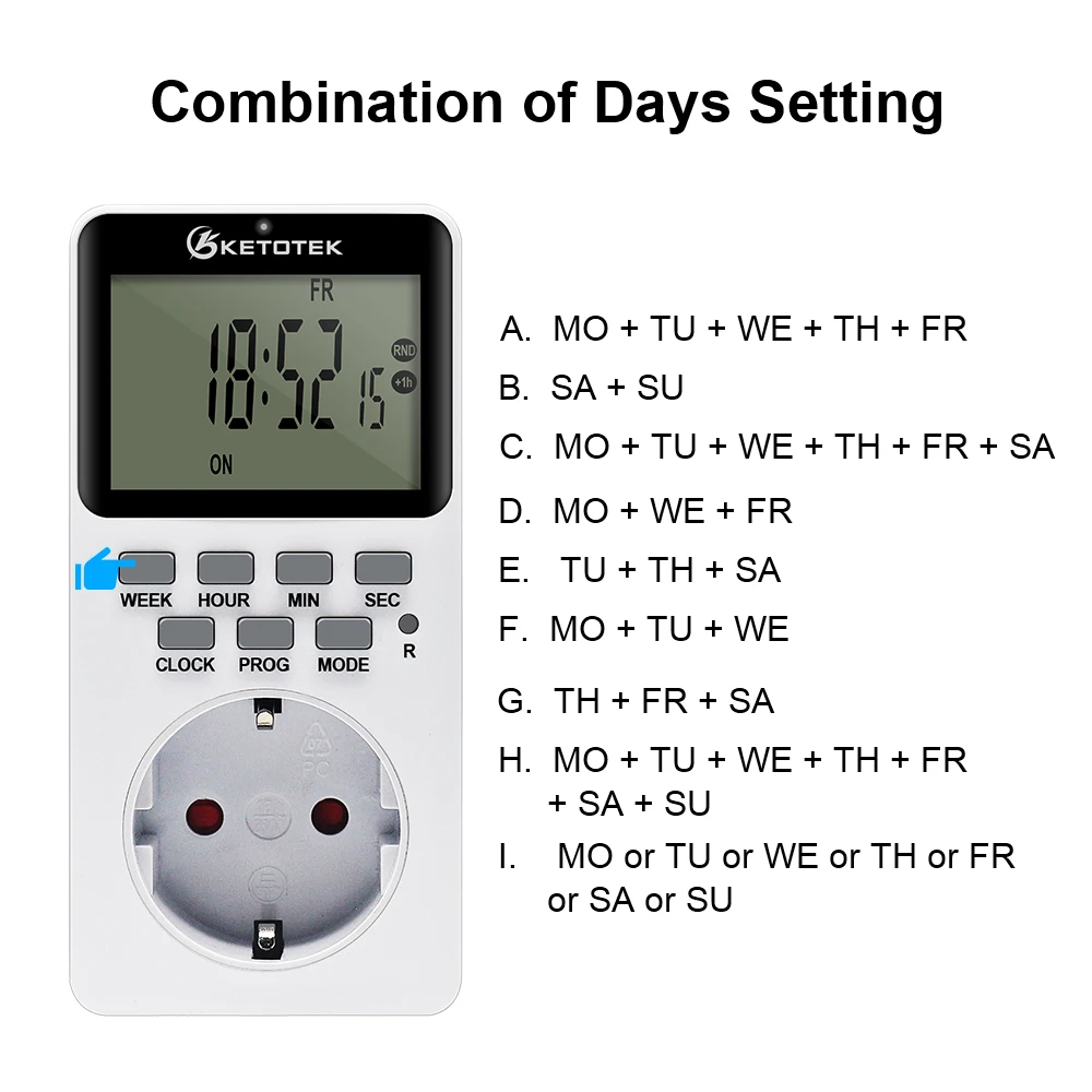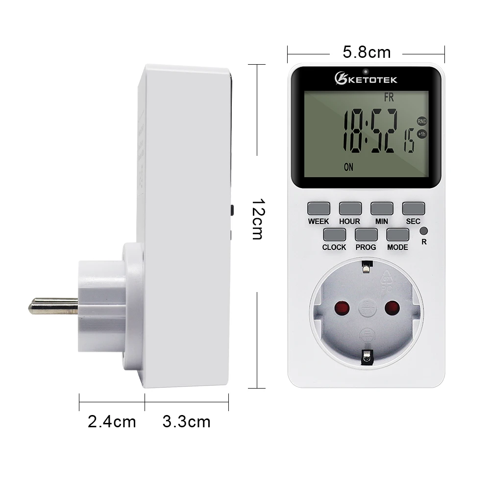 EU FR UK FR Plug-in programmierbare Zeitschaltuhr Steckdose 230 V 50 Hz mit Sommerzeit-Zufallsfunktion für Küchen-Zeitschaltuhr
