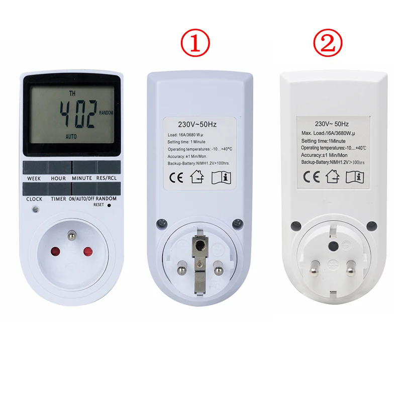 EU BR FR UK Plug-in Programmierbare Zeitschaltuhr Steckdose 230 V 50 Hz mit Sommerzeit-Zufallsfunktion für Küchen-Zeitschaltuhr