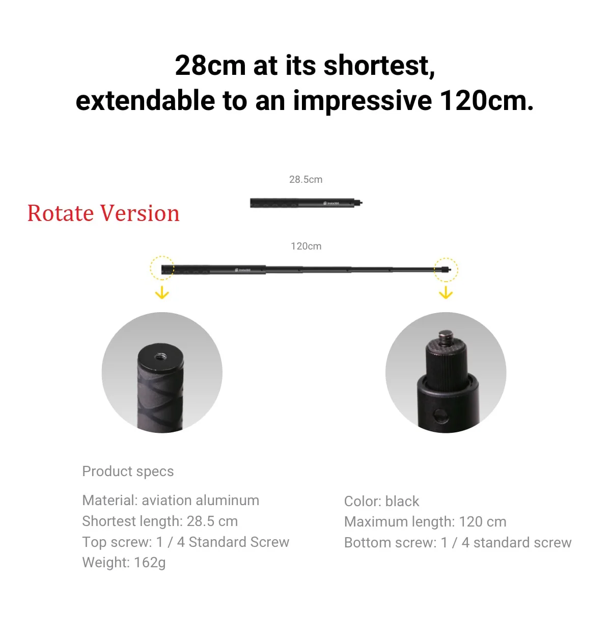 Insta360 X3 / ONE X2 Invisible Selfie Stick For GO 2 / ONE RS 70cm 1.2m Carbon Fiber Extension Rod Insta 360 ONE X 2 Accessory