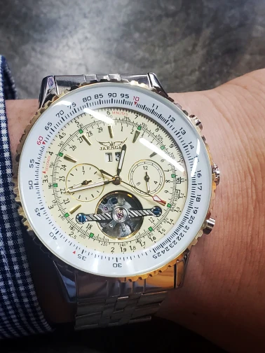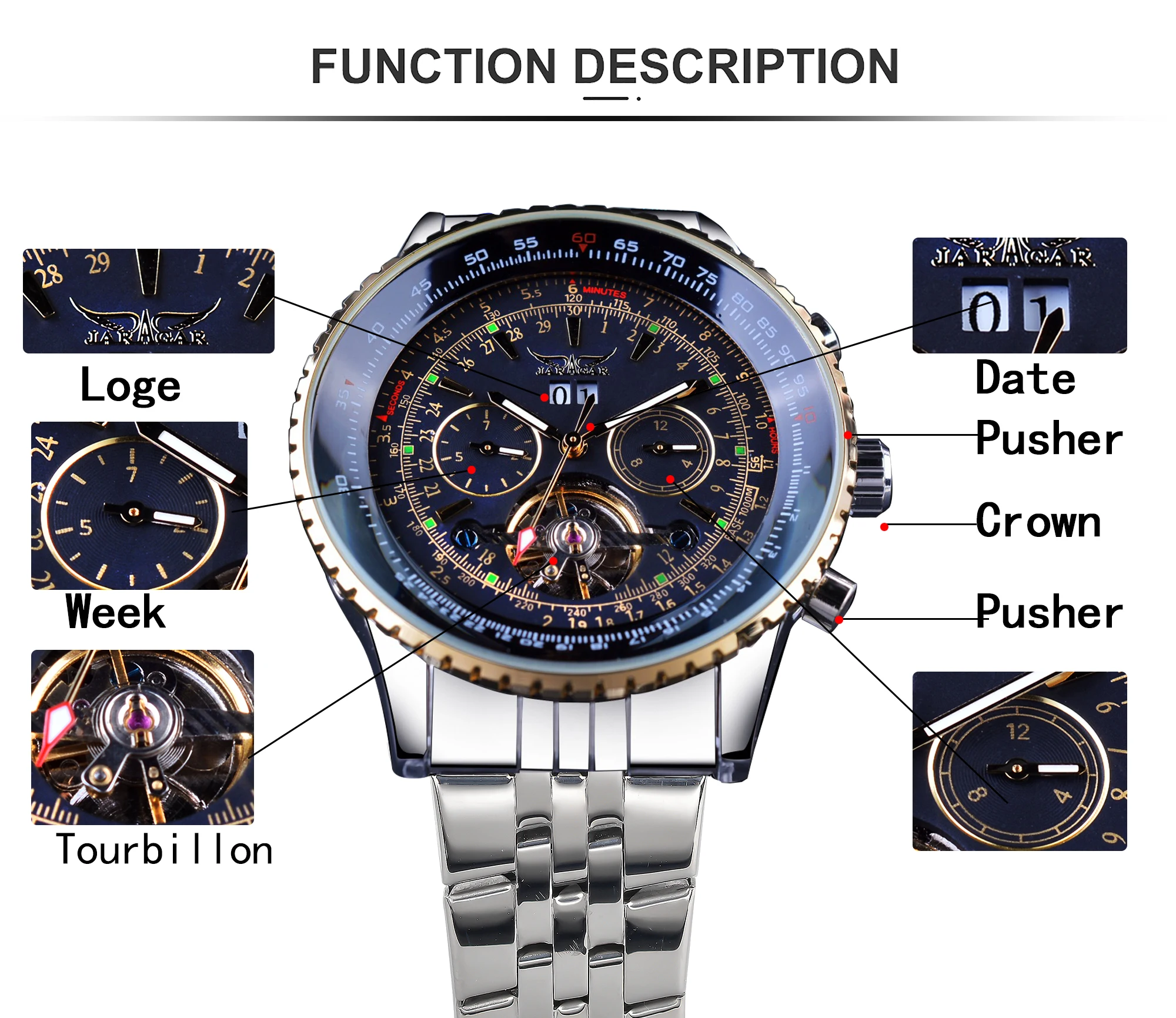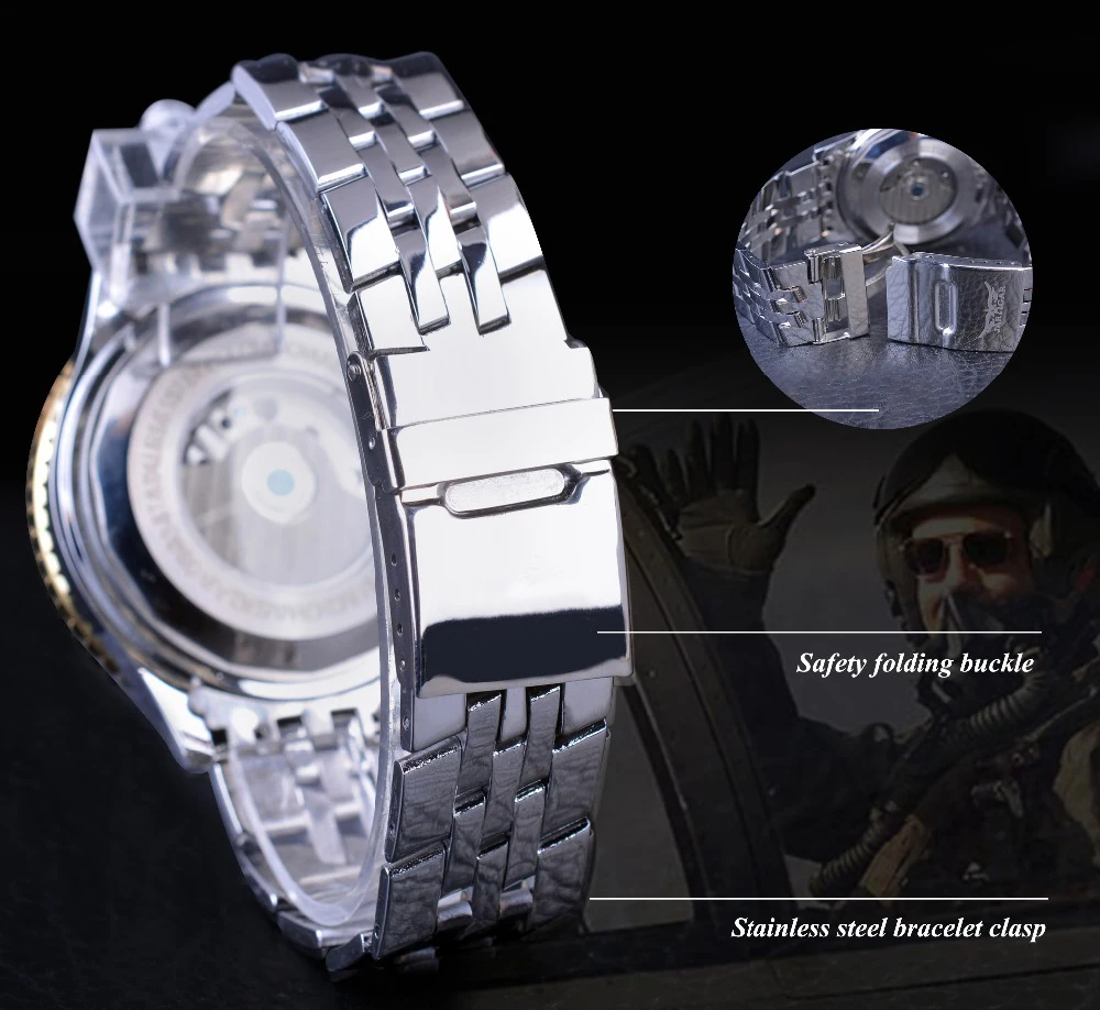 Jaragar 2017 Flying Series Goldene Lünette Skala Zifferblatt Design Edelstahl Herrenuhr Top-Marke Luxus Automatische Mechanische Uhr