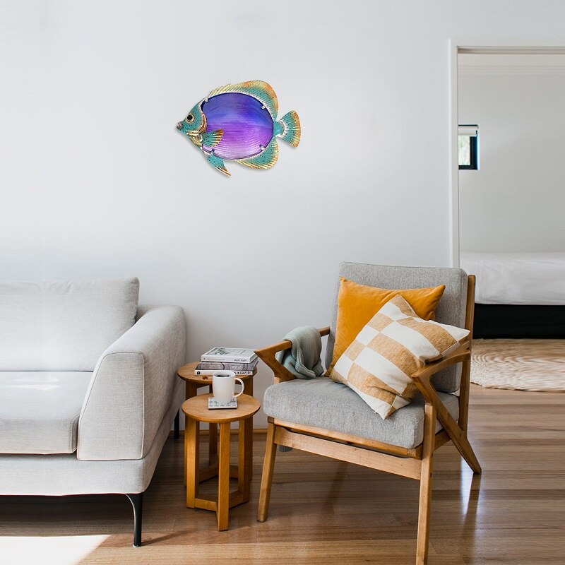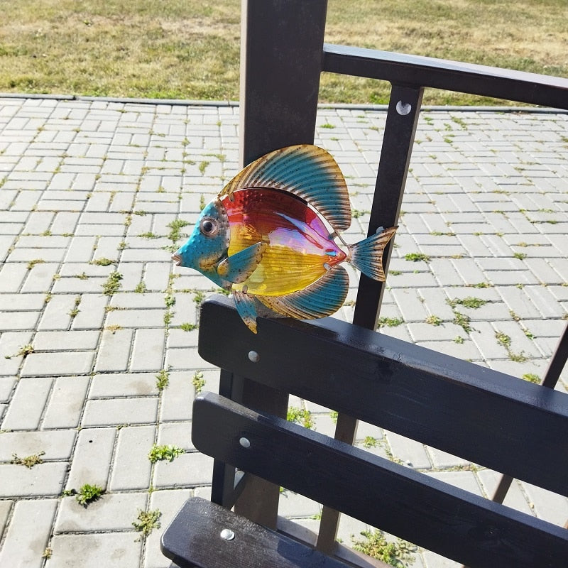 Entzückende Wanddekoration – aus hochwertigem Eisen und handgefertigter Körperstruktur, die den Rahmen langlebig macht; Inzwischen bestehen die exquisiten Fische aus lebhaften Augen, einem niedlichen Mund, einem wunderschönen rückseitig bemalten Glasmuster und wunderschönen Flossen
