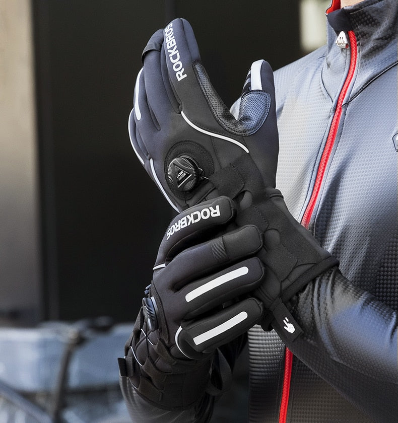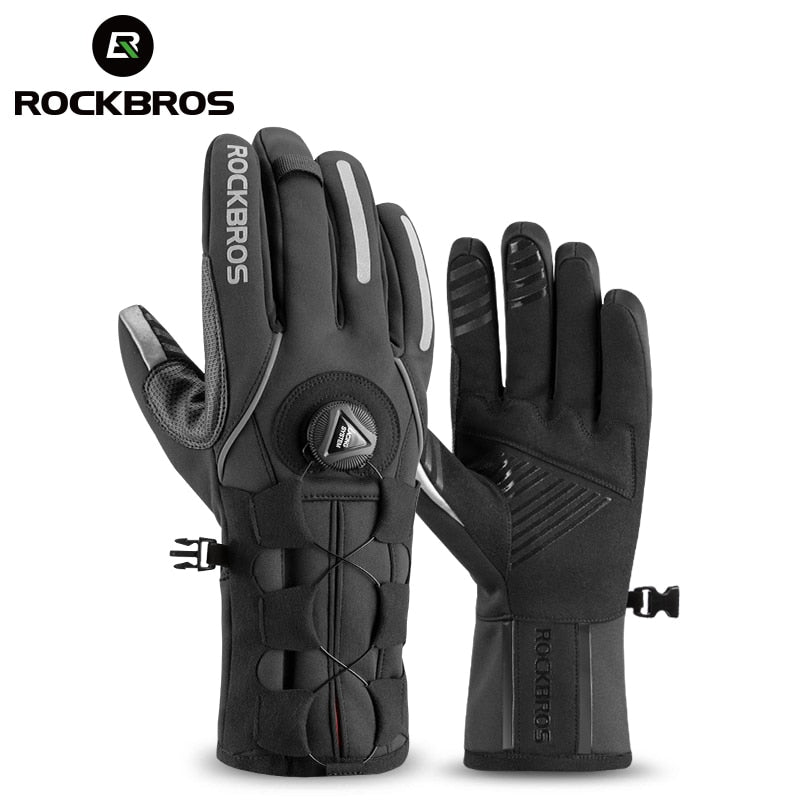 ROCKBROS Einstellbare Fahrradhandschuhe Reflektierender Bildschirm Touch Warme MTB-Fahrradhandschuhe Outdoor Wasserdichte Motorrad-Fahrradhandschuhe
