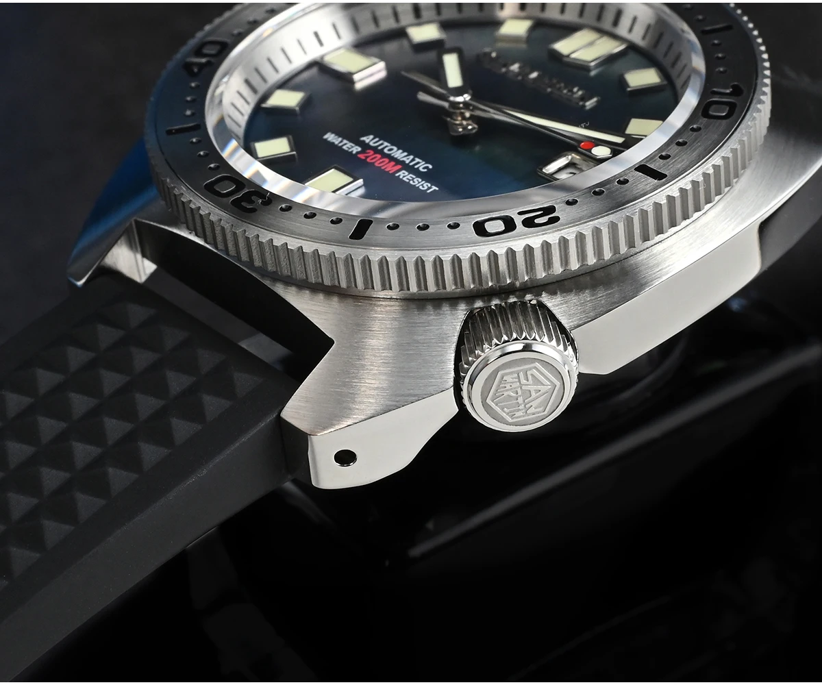 120 Klicks, Lünette aus Edelstahl 316L, 12-Uhr-Leuchtmarkierungen
