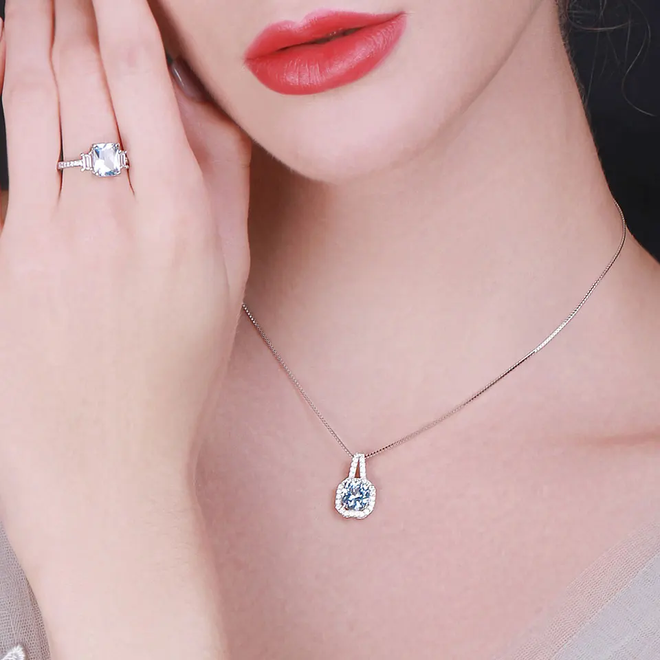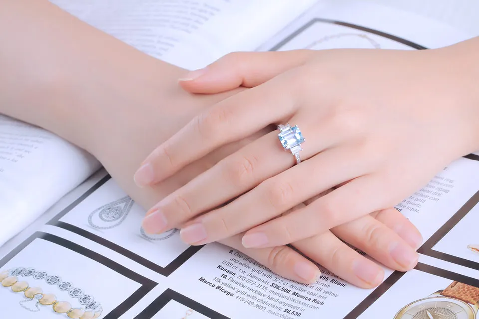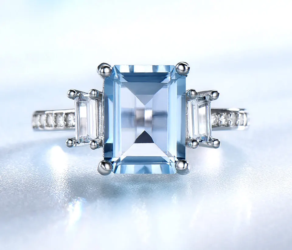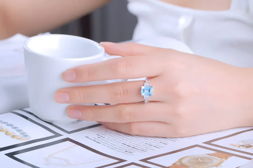 UMCHO Blauer Topas Edelstein Ringe für Frauen Echter 925er Sterling Silber Aquamarin Ring Romantische Hochzeit Verlobung Feiner Schmuck