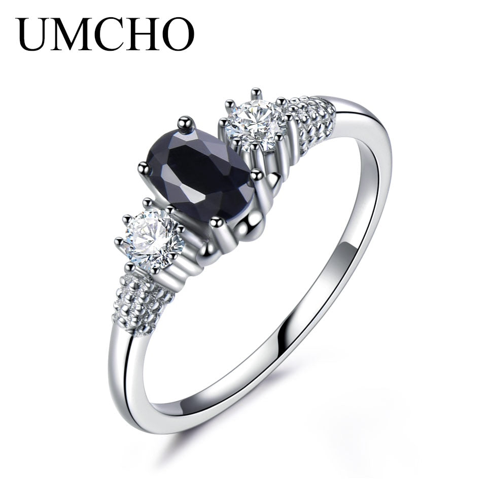 UMCHO Luxus Natürlicher Schwarzer Spinell Prinzessin Diana Ringe Echte 925 Sterling Silber Verlobungsringe Für Frauen Hochzeit Schmuck