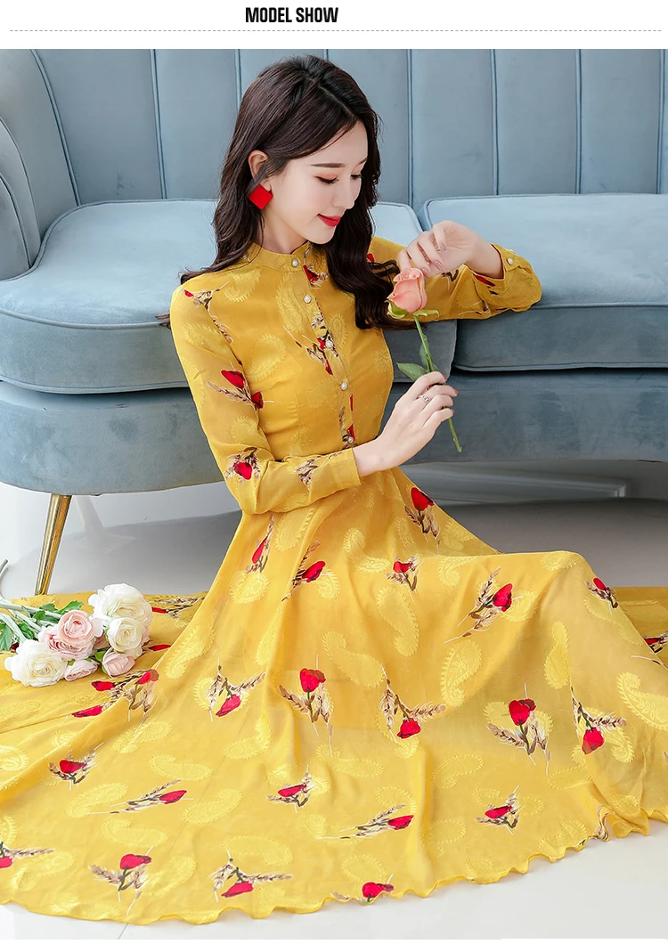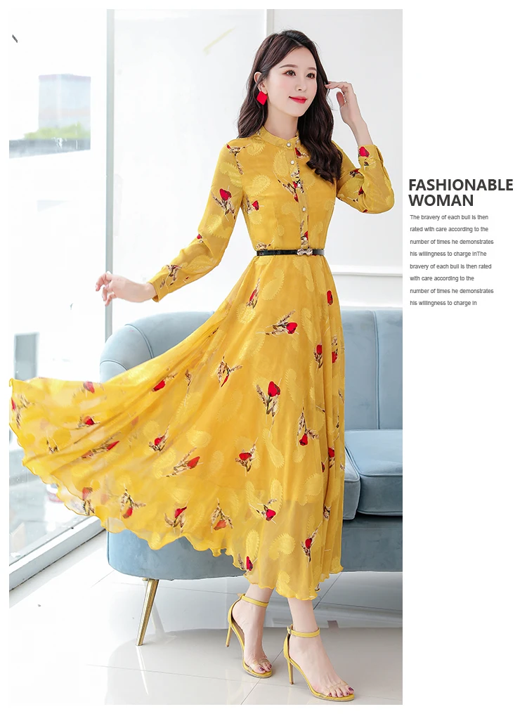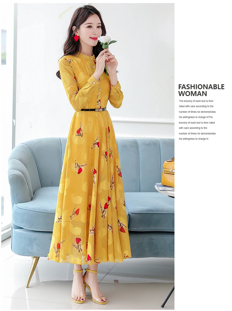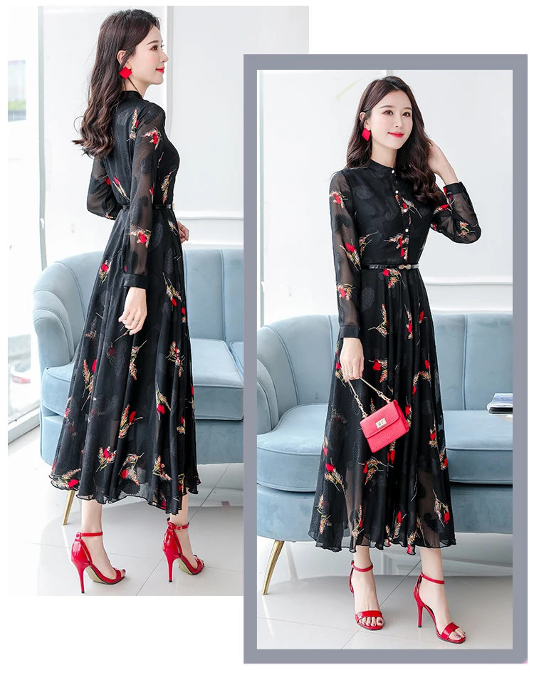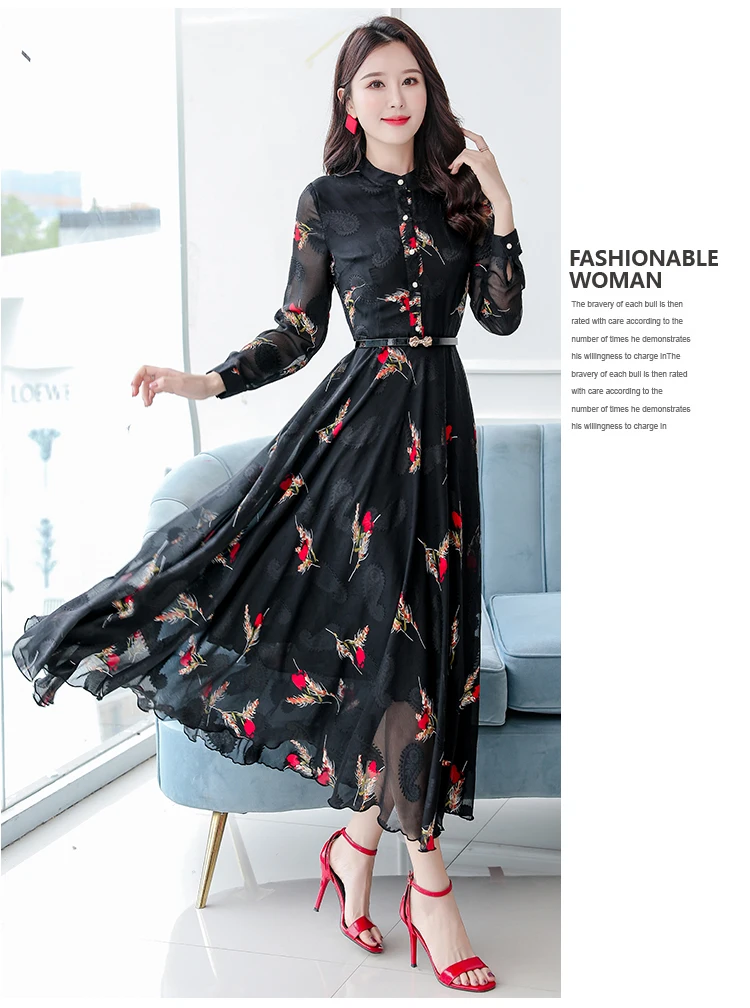 HUTI WJWYL Neue Ankunft Hohe Qualität 3XL Plus Größe Vintage Chiffon Schwarz Casual Midi Kleid Herbst Winter Elegante Frauen Boho Maxi Kleid Party Langarm Vestido