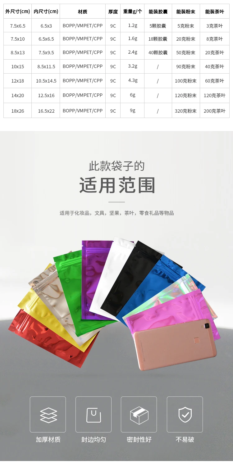 100 Pcs Colorful Top Feed Foil Zip Lock Bags Food Pouch,Mylar Aluminum Foil Bags,Tea Pouches,Food Storge Bag