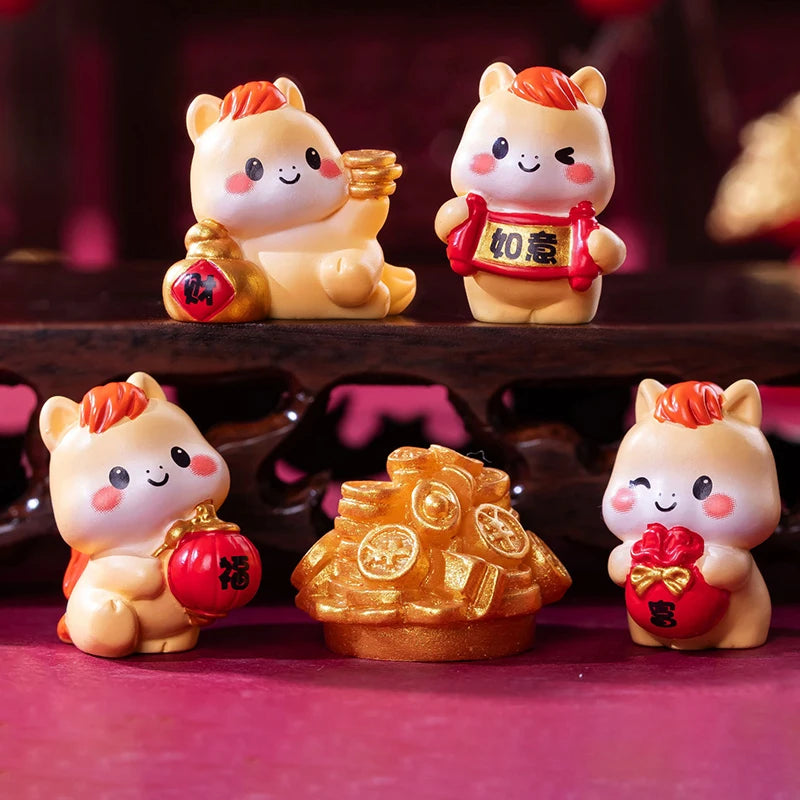 1PC 2026 New Year Figurines Miniatures Cartoon Lucky Horse Micro Landscape Ornaments Home Desk Decorations Room Decor Gift