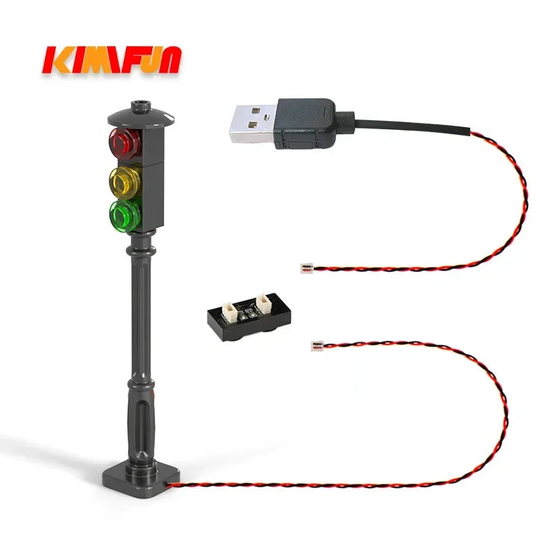 1pcs LED MOC Street Automatic Cycle Traffic Signal Light Building Blocks City Series Bricks Block Set Model