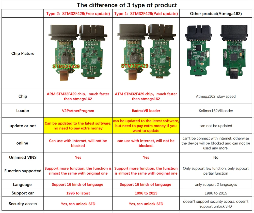 This is ARM STM32F429 Chip with Free update version , support cars from 1998 to 2023.