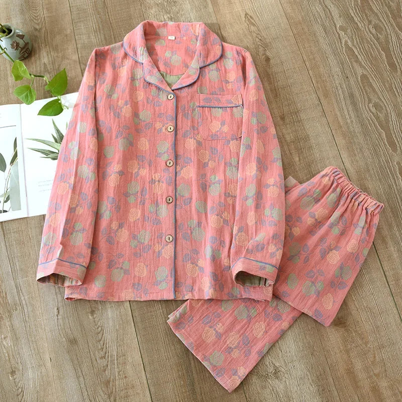 2025 New Women's Spring and Autumn Pajama Set 100% Pure Cotton Retro Chinese Style Long Sleeve Two Piece Set Large Home Fury