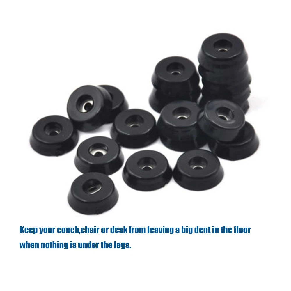 Features: 1.Keep your couch,chair or desk from leaving a big dent in the floor when nothing is under the legs. 2.Great for protecting your household furniture tables and chairs from moving or sliding around. 3.Also can protect your tile, wood or vinyl floor from scratches. 4.Rubber material in black color, and conical shaped design for standing steady.