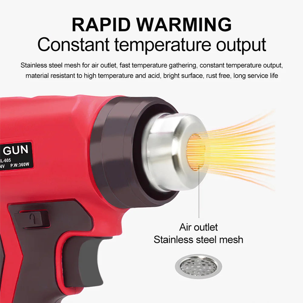 Wide range of applications, perfect for car filming, softening wires, shrinking plastic films, installing electronic components, dissolving pipes, removing old paint, and defrosting functions.