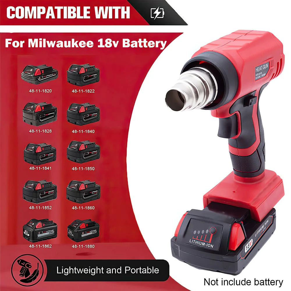 360W Cordless Heat Gun Portable 400℃ Hot Air Gun with 4 Nozzle Fit for Milwaukee 18V Battery (No Battery)