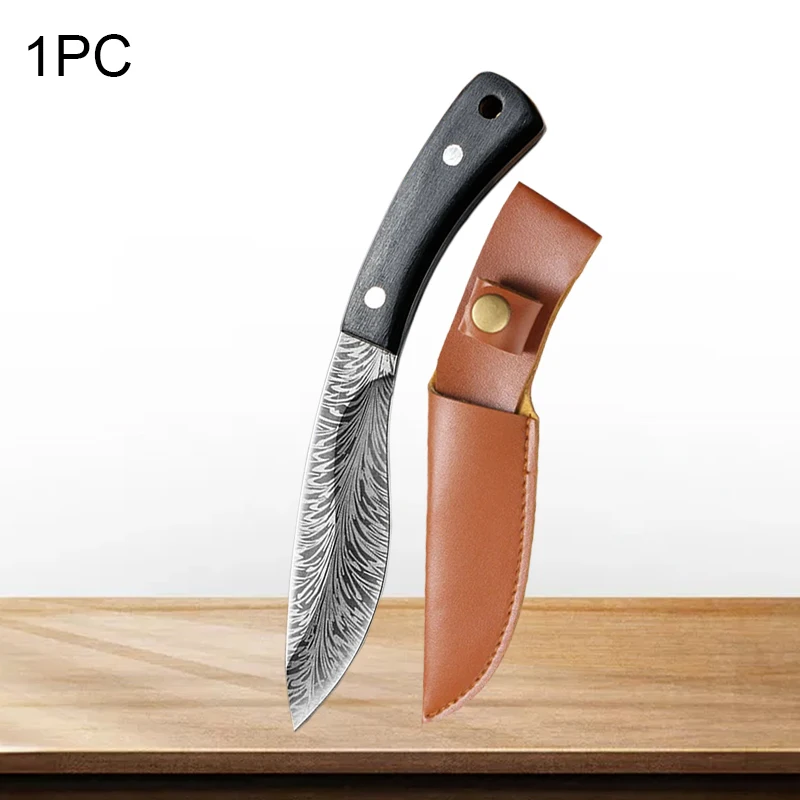 4inch Stainless Steel Boning Knife Handmade Forged Slicing Meat Cleaver Knives Small Pocket Knife with Sheath Wooden Handle