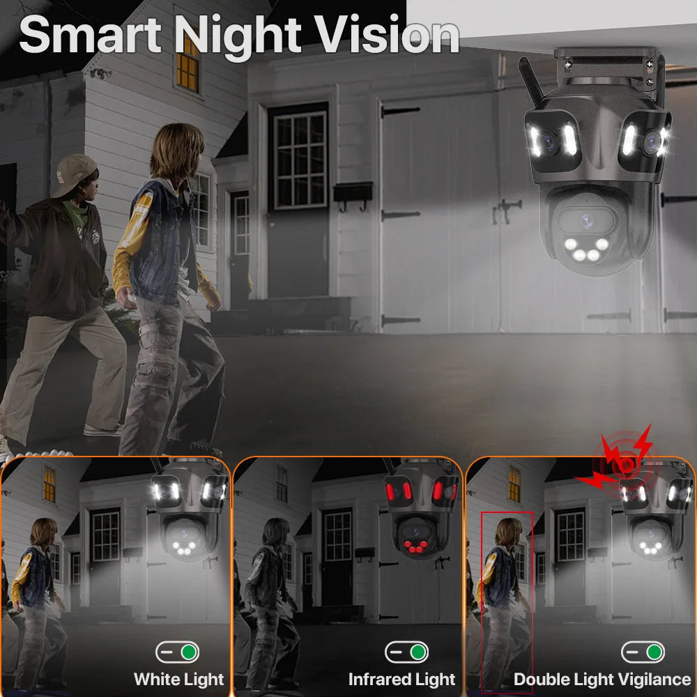 6K HD Outdoor Wifi PTZ Camera Three Lens 4K Dual Screen IP Camera Auto Tracking Color Night Video Surveillance CCTV P2P iCsee