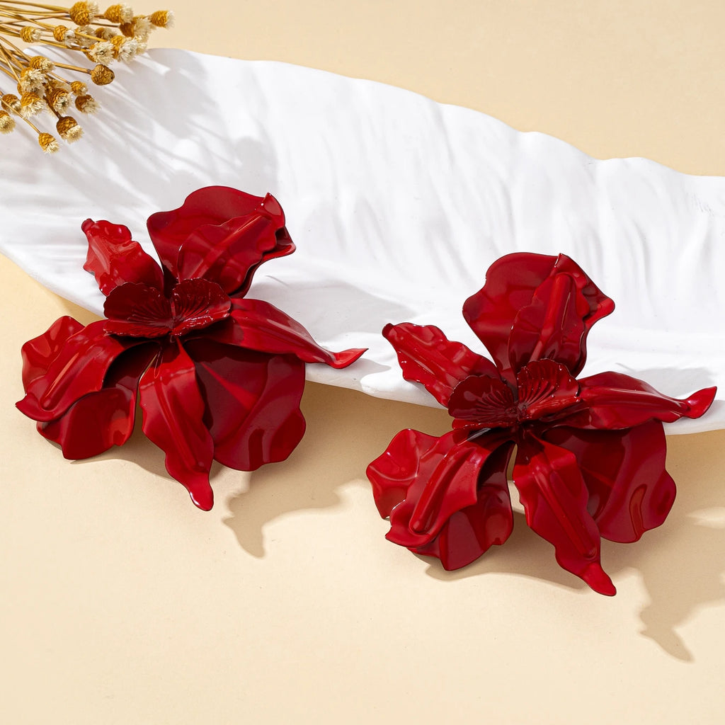 A Pair of Women's Earrings, Exaggerated Stereo Flowers, Earrings and Jewelry Available in Various Colors, Suitable for Daily Wear and Gift Giving