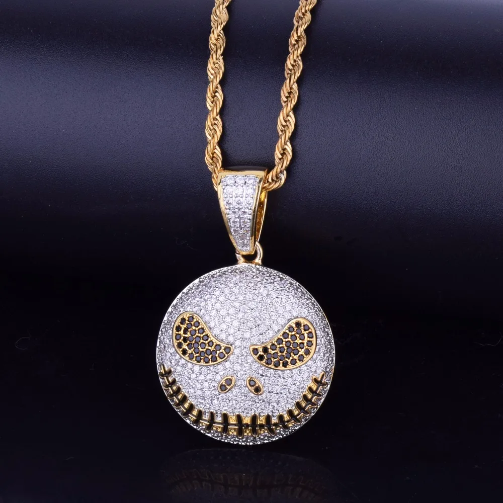 Charakter Rundes Gesicht Anhänger Halskette Gold Farbe Kubikzircon Männer Hip Hop Schmuck für Männer