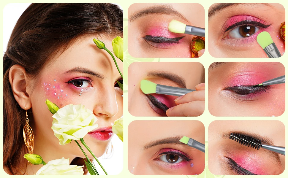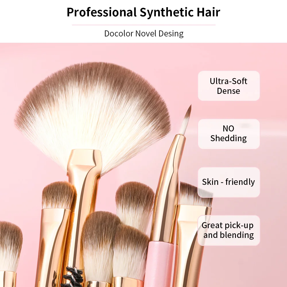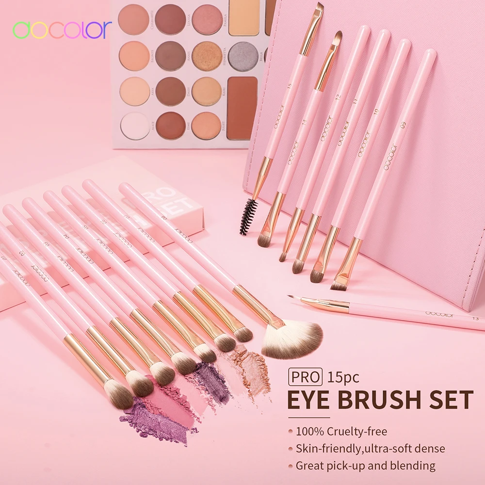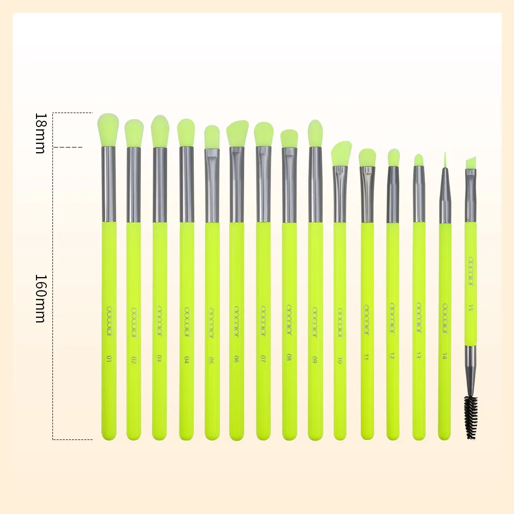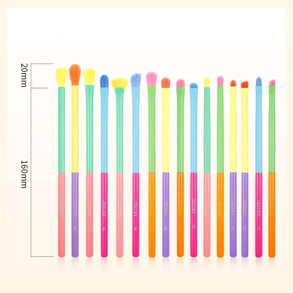 Docolor bunte 15/16-teilige Lidschattenpinsel umfassen Lidschattenpinsel, Mischpinsel, Eyelinerpinsel, Fächerpinsel, Augenbrauenpinsel und Abdeckpinsel. Verschiedene Formen und Größen der Borsten lassen sich wunderbar kombinieren und ermöglichen Ihnen, eine Vielzahl von Augen-Make-ups zu kreieren.