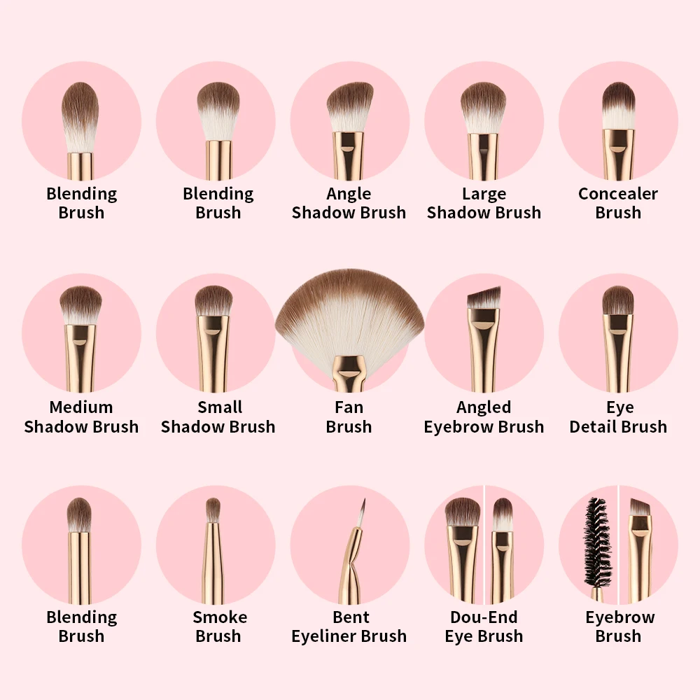 Über 15pcs Pink Eye Make-up-Pinsel:
