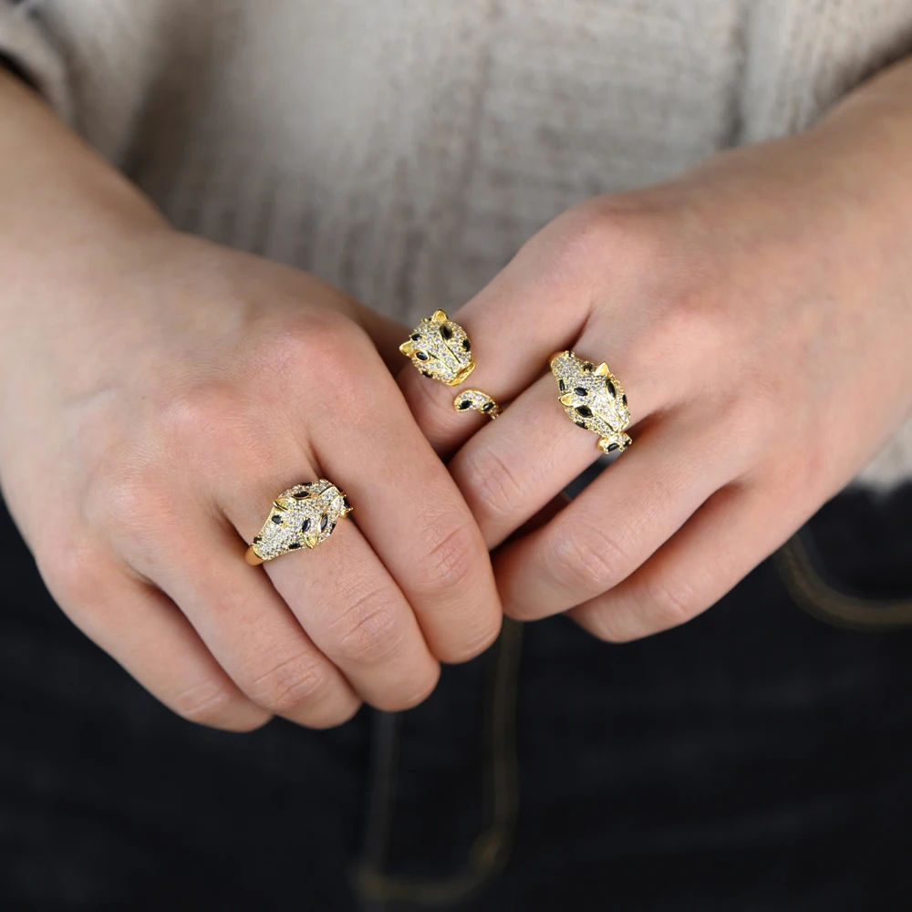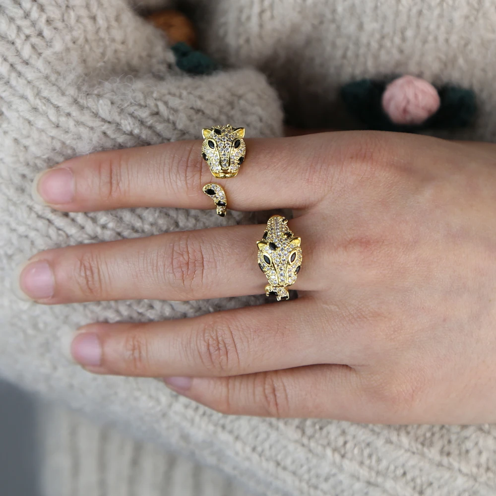 Gold color Jaguar earring ring necklace jewelry set for women white black cz leopard design