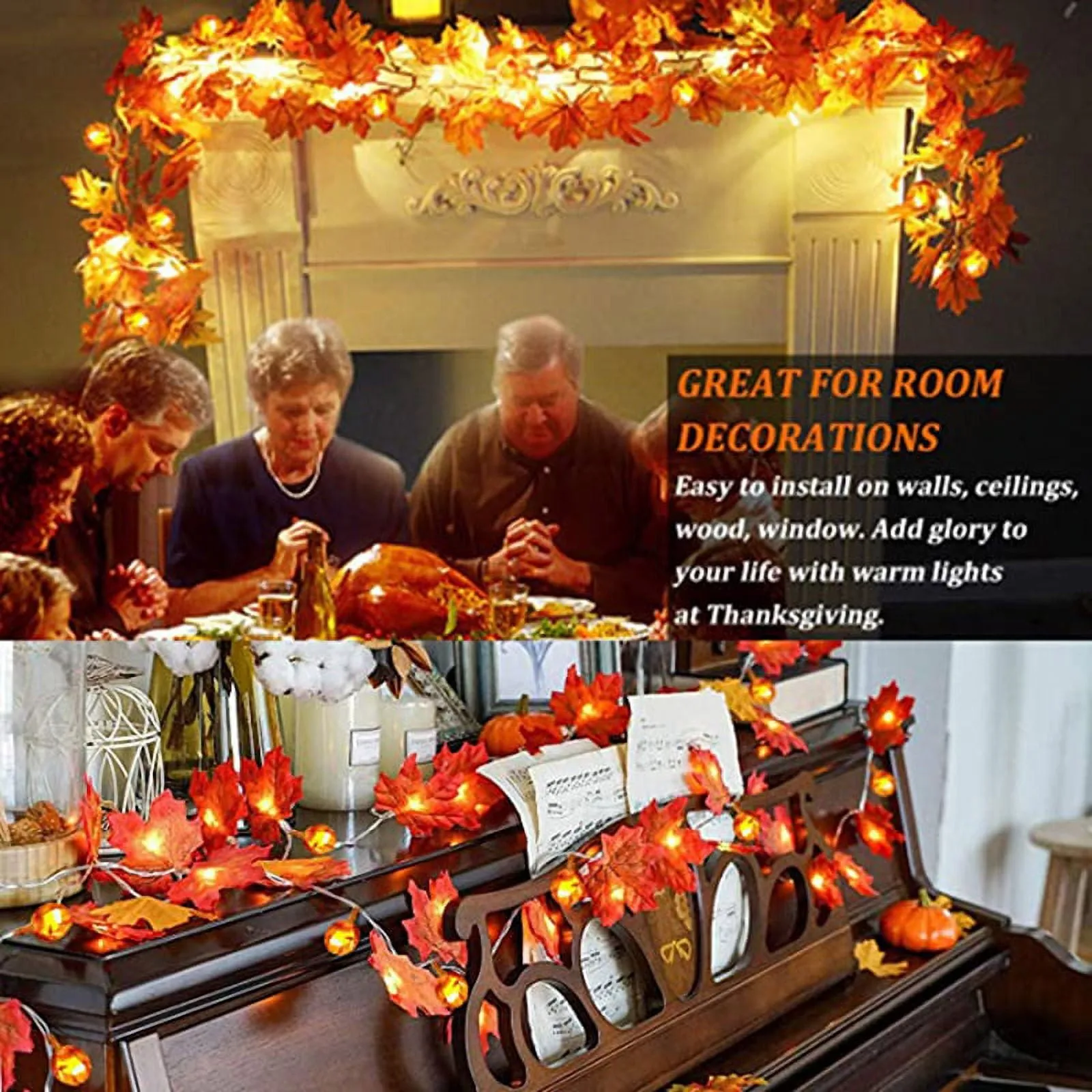 【LED Maple String Light】The fall garland with beautiful ORANGE-RED maple leaves,eachLED bulb and exude warm light.In daylight decorate your yard,home or railing,Bring you the breath of autumn.At night create a warm holiday atmosphere,the bright light made you amazing.