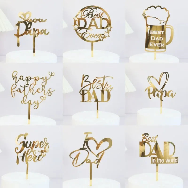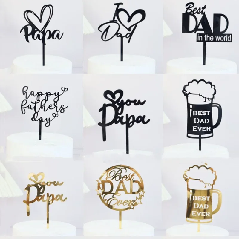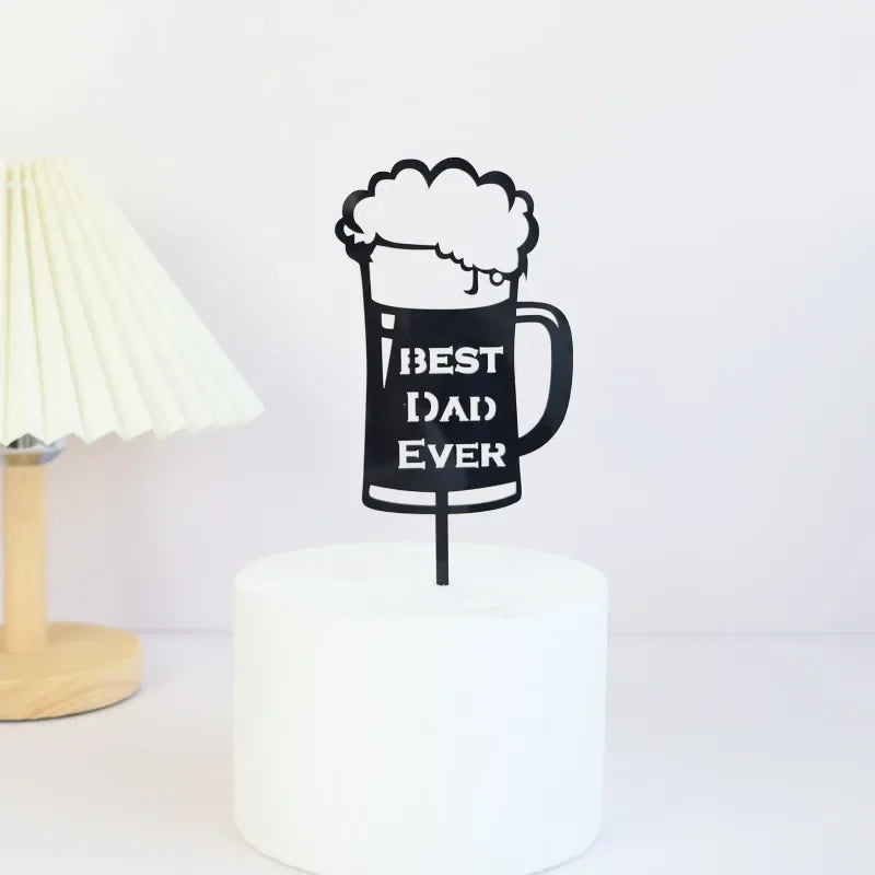 New Dad's Happy Birthday Cake Topper Golden Beer Super Dad High-grade Acrylic Father's Day Party Cake Toppers Dessert Decoration