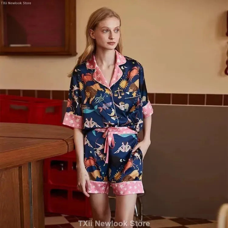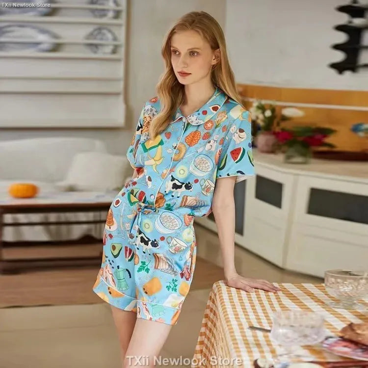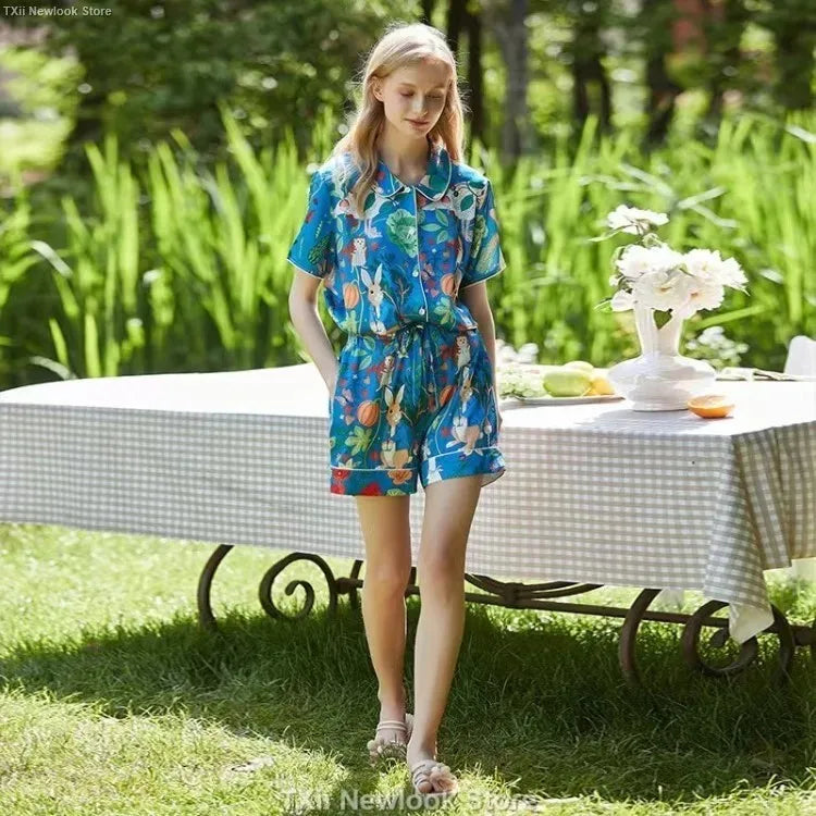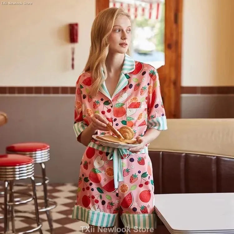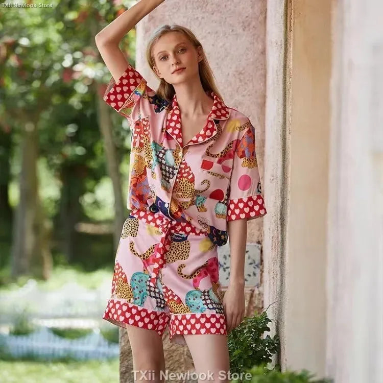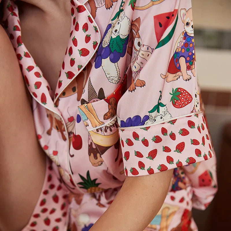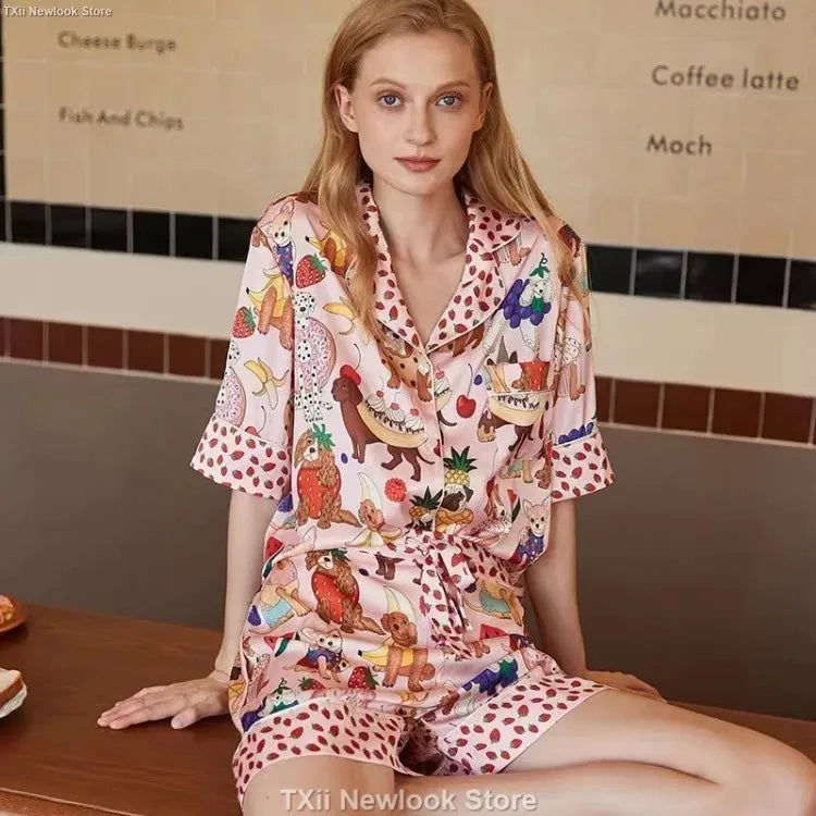[Pink Dessert Dog] Summer Short-sleeved Pajamas Women's Ice Silk Thin Loose Large Size Home Clothes Two-piece Suit