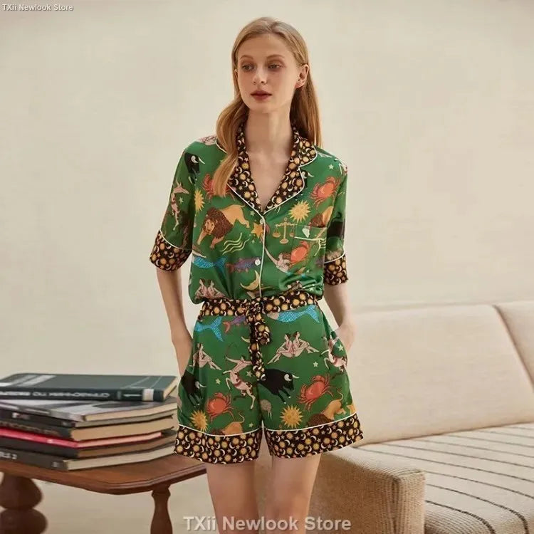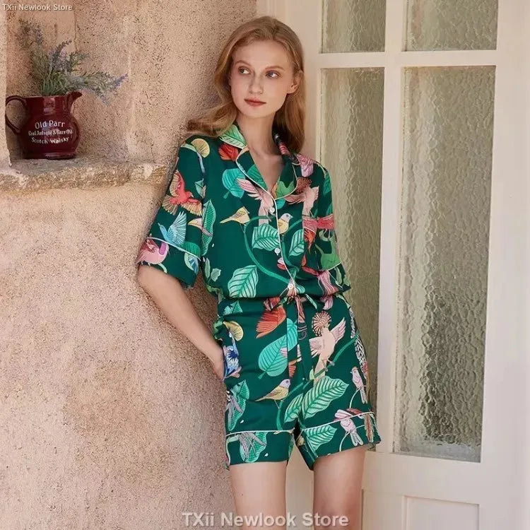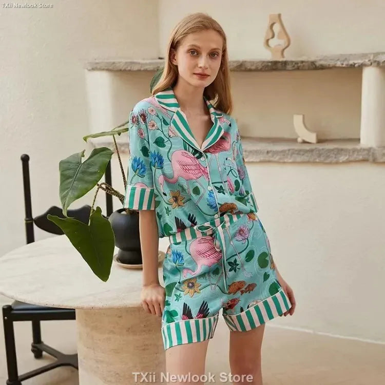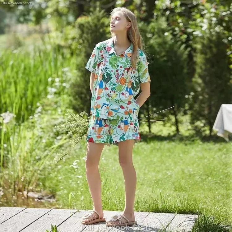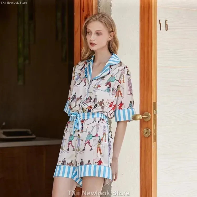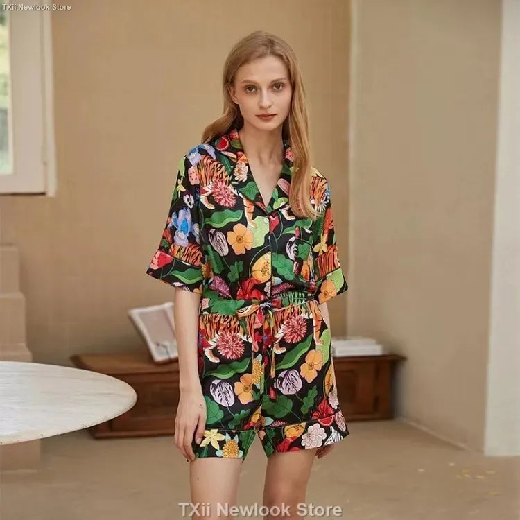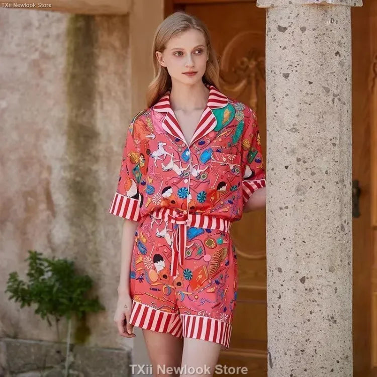 [Pink Dessert Dog] Summer Short-sleeved Pajamas Women's Ice Silk Thin Loose Large Size Home Clothes Two-piece Suit