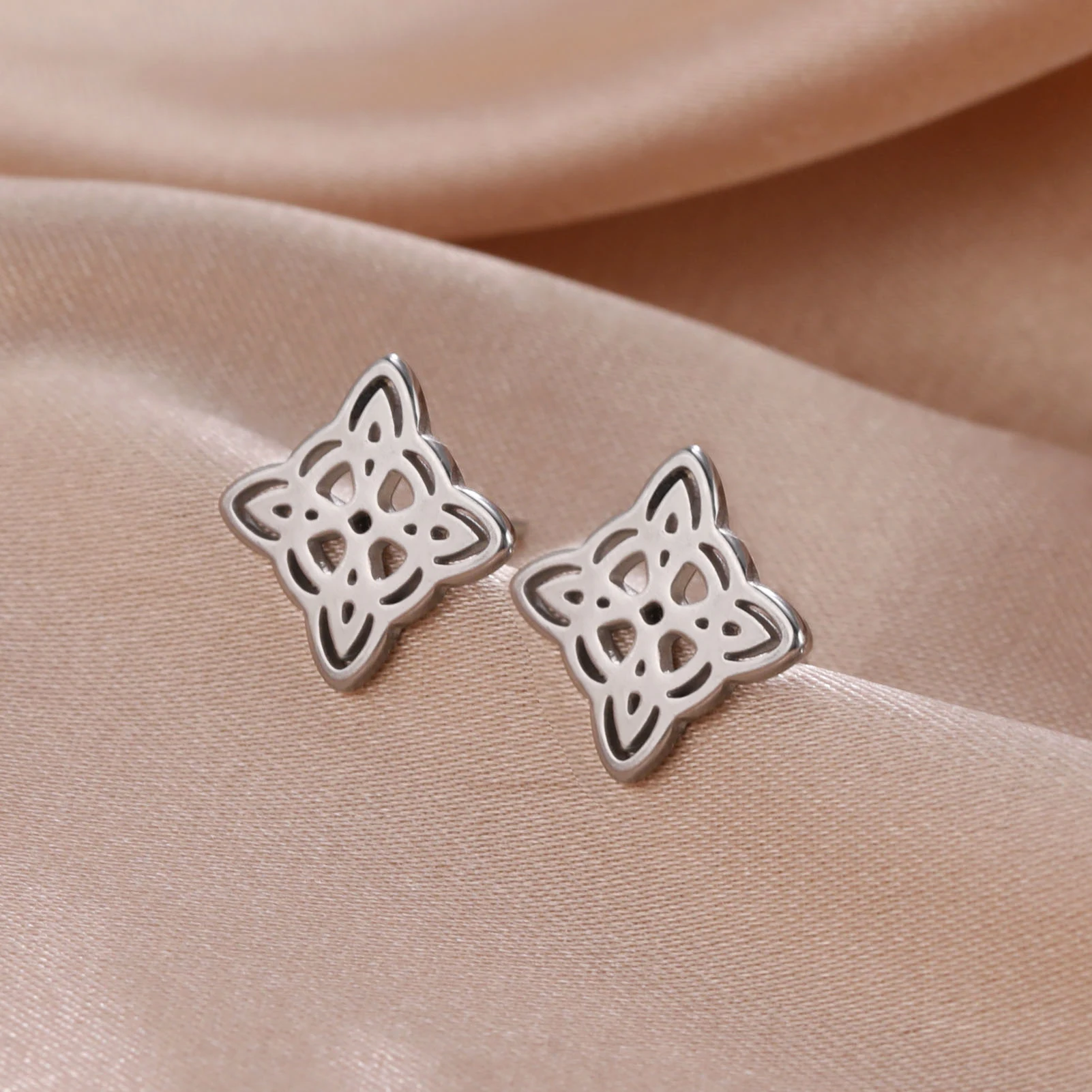 Skyrim Witch Knot Stud Earrings Women Stainless Steel Irish Knot Witchcraft Amulet Protection Earring 2024 Vintage Jewelry Gifts