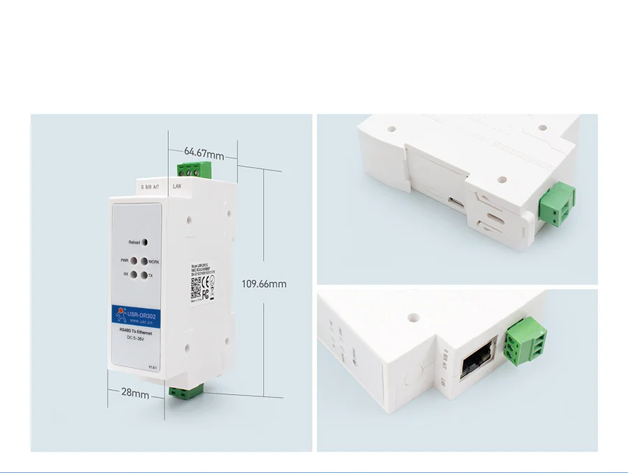 USR-DR302 DIN-Rail RS485 Serial to Ethernet Converter Bidirectional Transparent Transmission Between RS485 and RJ45