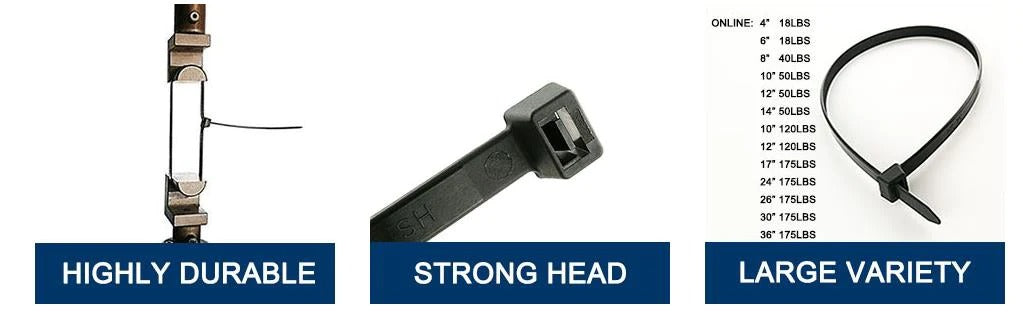 Möchten Sie starke Kabelbinder, die sich nicht nur auf das Material beziehen, sondern auch auf einen starken Ratschenkopf, stellt HS sicher, dass jede Charge von Kabelbindern, deren Stärke dem Industriestandard entsprechen sollte, einer Qualitätskontrolle unterzogen wird.