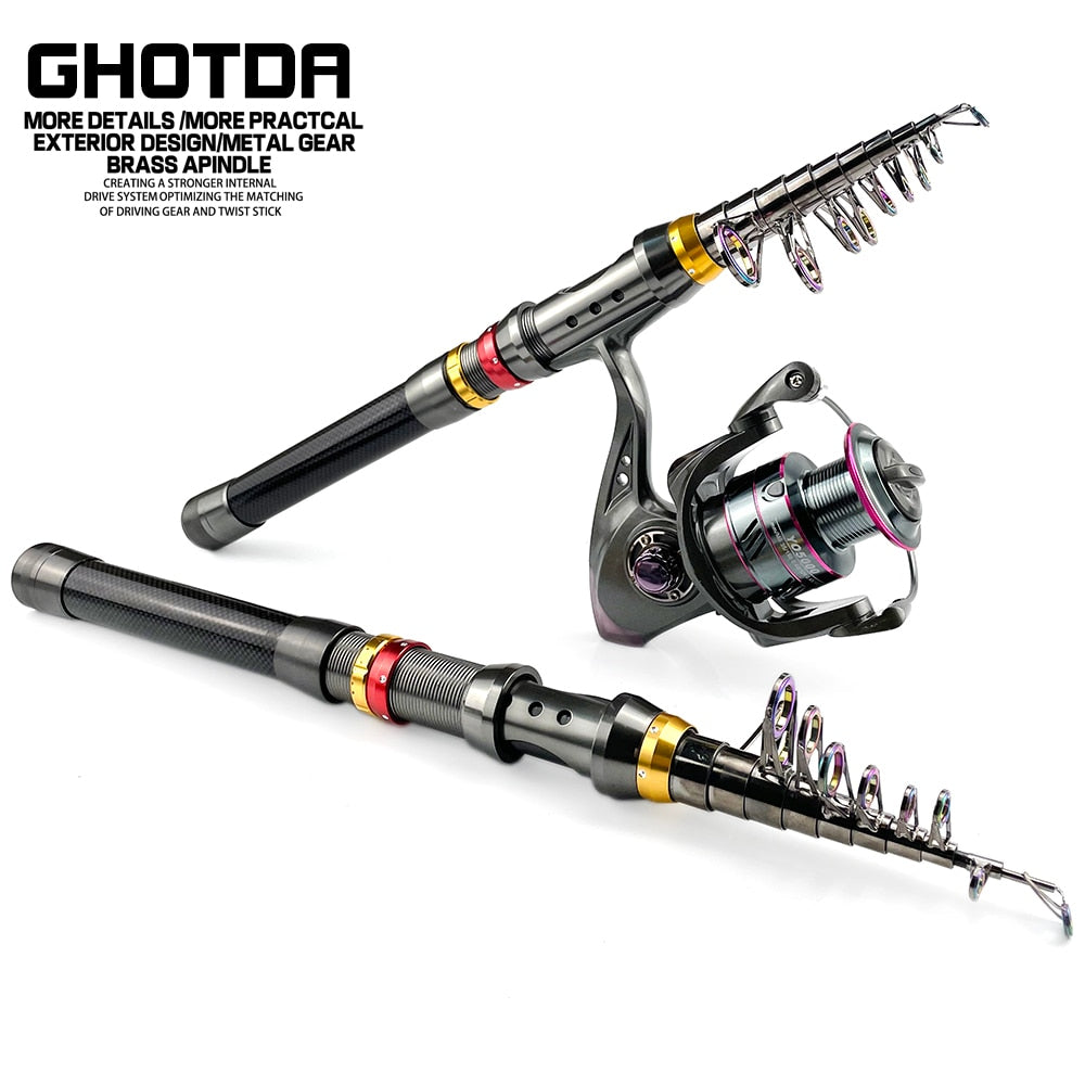 1.8-3.6m Carbon Fiber Spinning Fishing Rod 5.2:1 Fishing Reel Combo Telescopic Fishing Pole Spinning Reel Kit Pesca