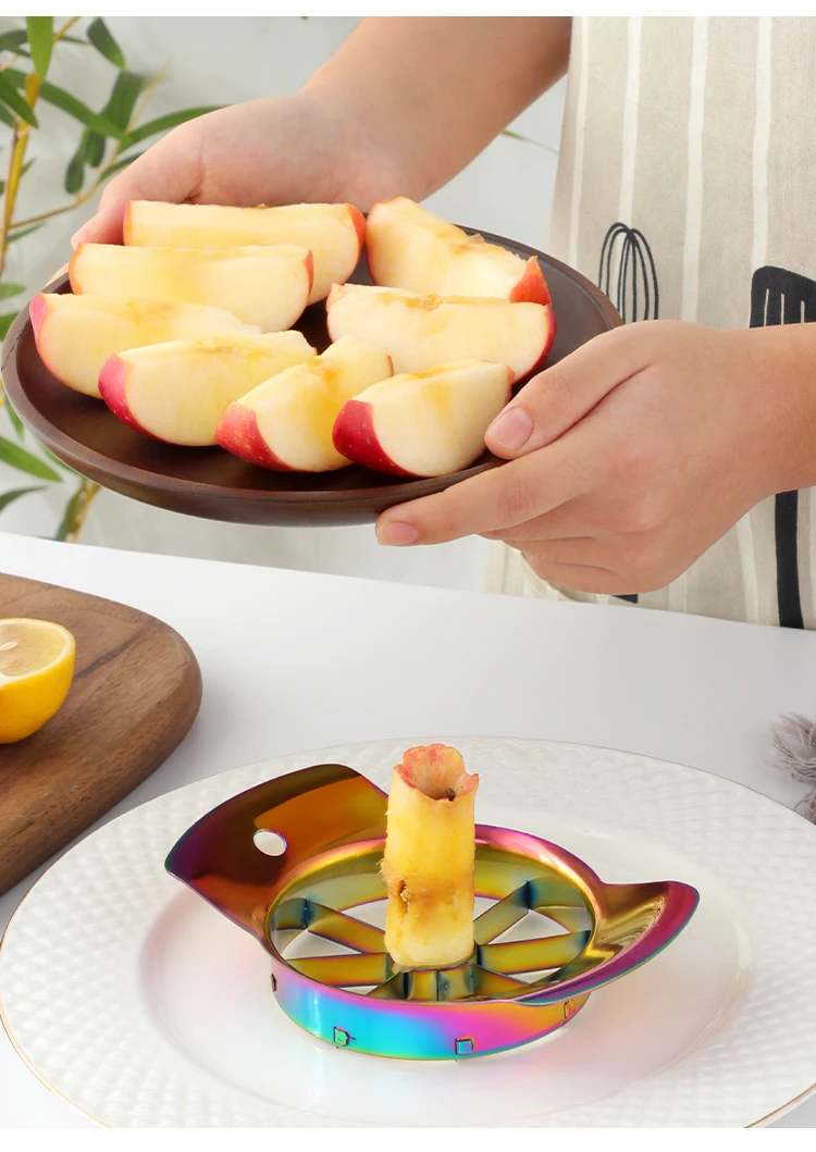 2.The corer slicer fruit cores and slices the apple into sections in one swift movement