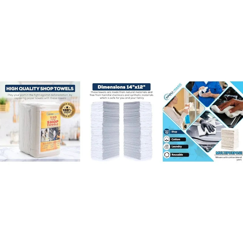 Set Includes 150 Shop Towels in White measuring 14 by 12 inches each