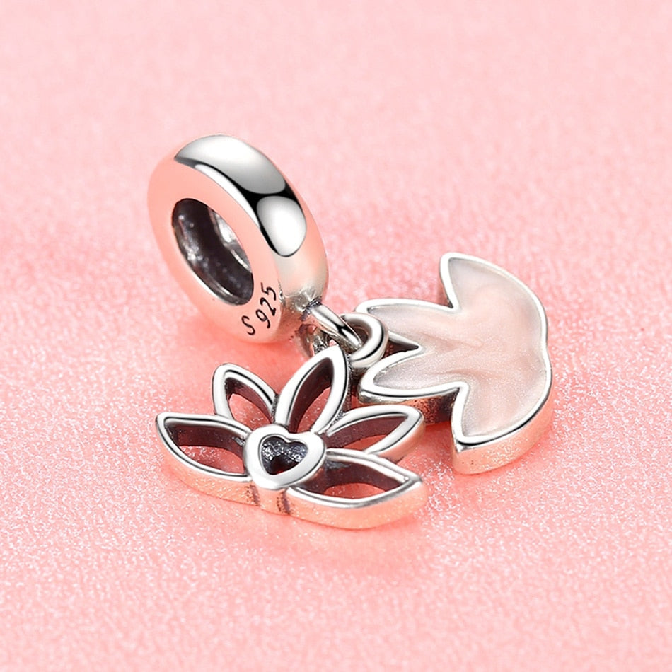 Design: Pink Enamel Lotus Flower Dangle Charm