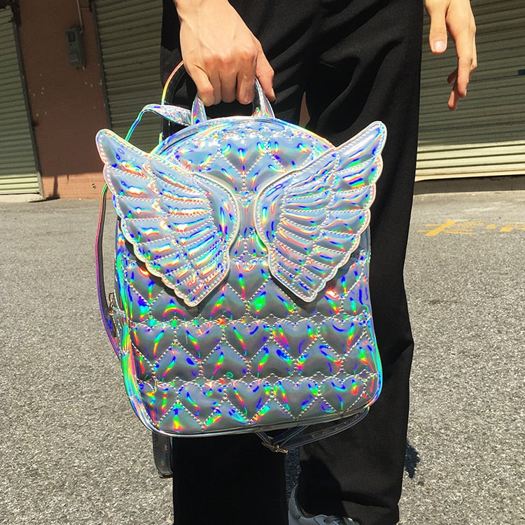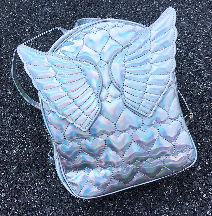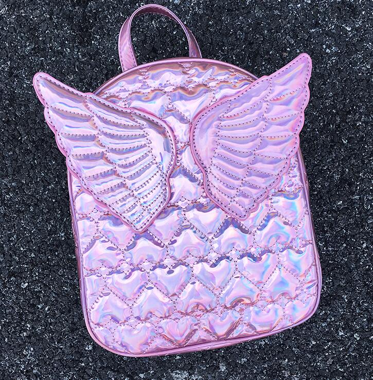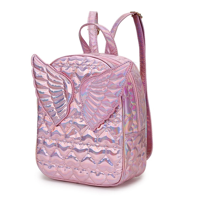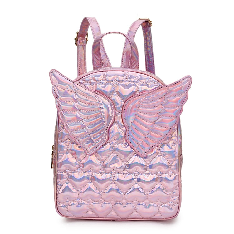 Dazzling Fashion Heart Embossed Wings Decorated Girl's Mini Backpack Shoulder Bag Travel Bag School Bags For Teenage Girl Bolsa