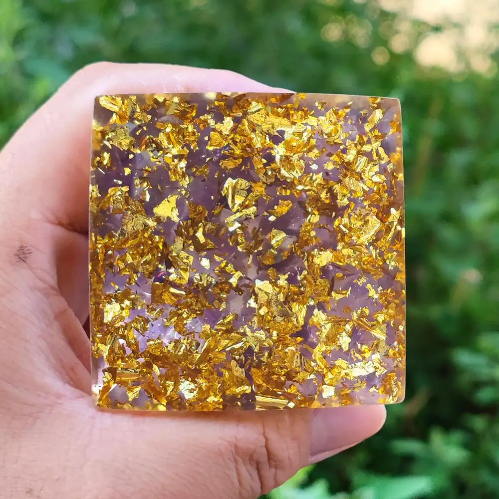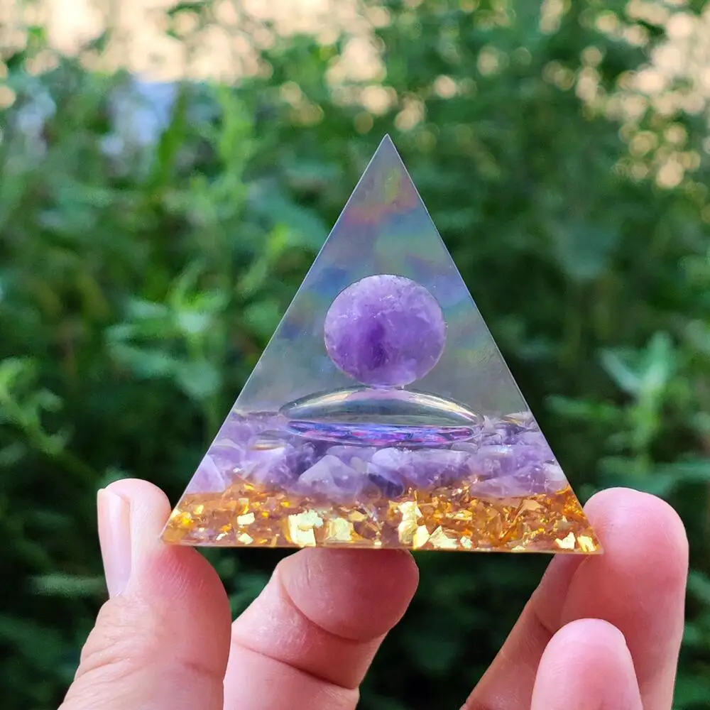 Handmade Orgonite Pyramid 60mm Sahasrara Chakra Purple Crystal Natural Stone Orgone Energy Healing Orgone Pyramid