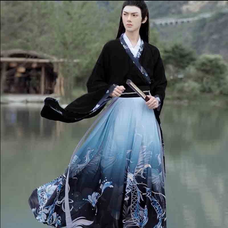 Plus Size 6XL Hanfu Couples Chinese Traditional Embroidery Clothes Adult Halloween Cos Costume Black Blue Hanfu For Men/Women