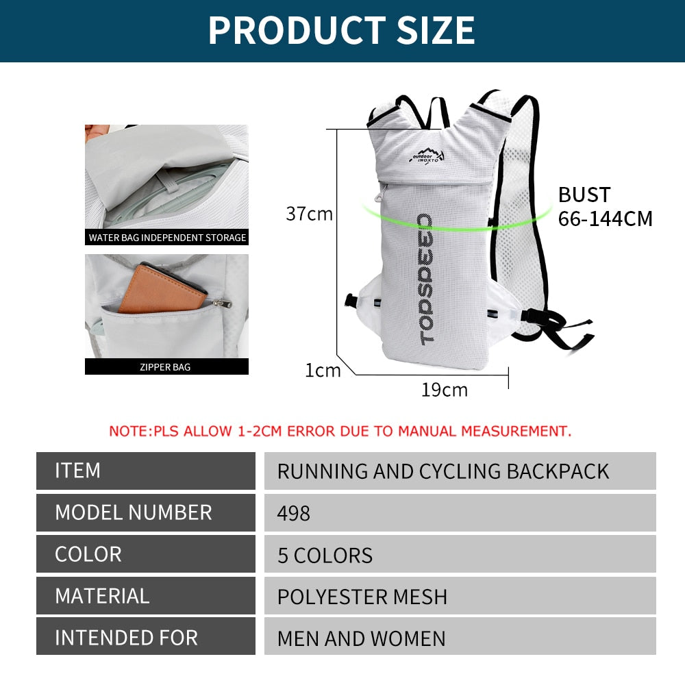 Trail running backpack 5L super running hydrating vest bag marathon running cycling backpack bag 250ml soft bottle bottled water