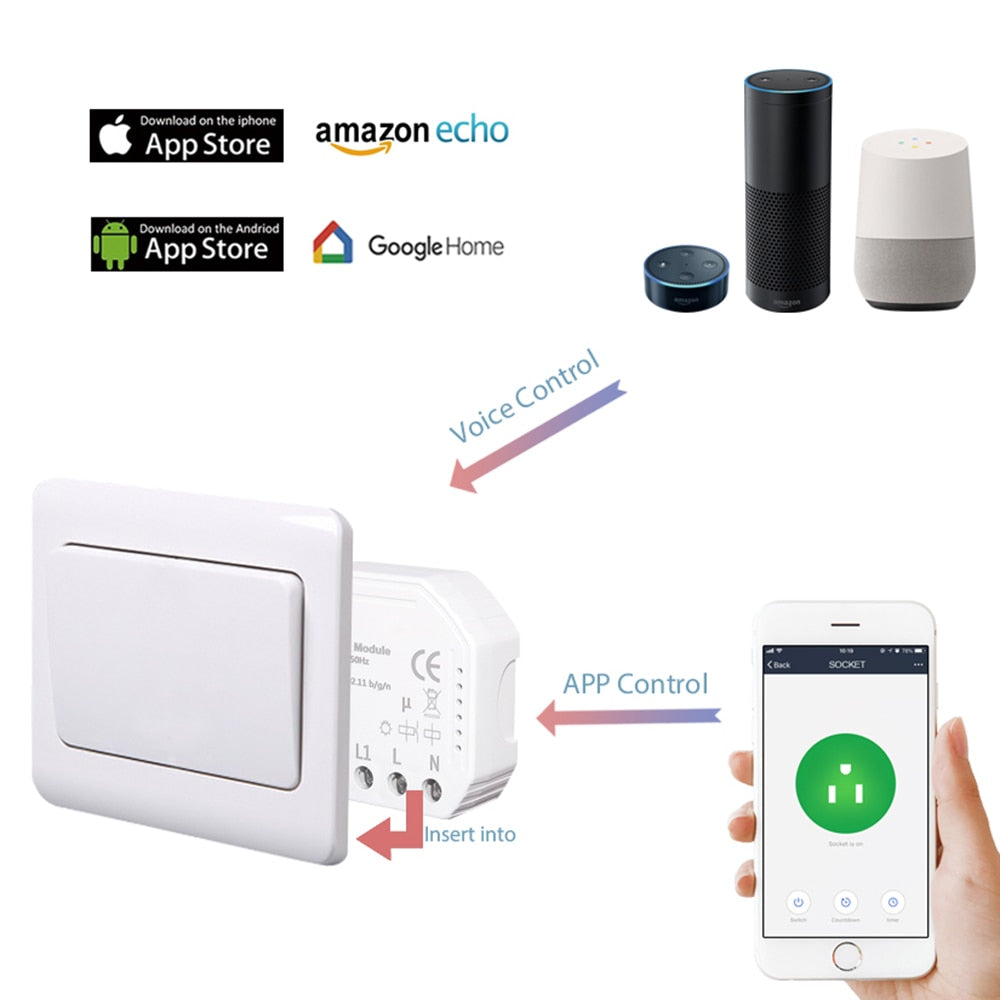 Tuya smart WiFi switch module turn your old switch into smart , compatible with alexa , google home ,IFTTT , timer switch module