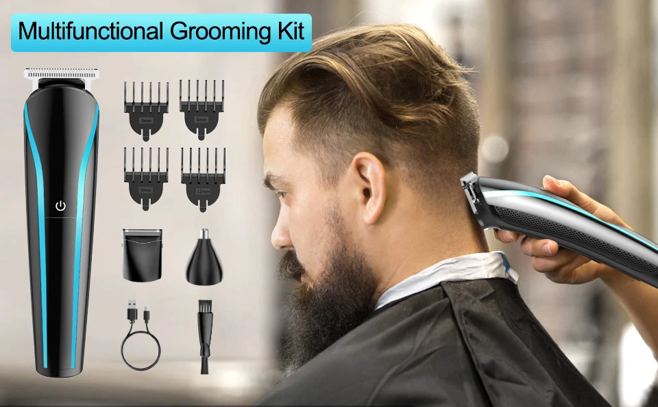 YBLNTEK 3 In 1 Electric Hair Trimmer for Men Grooming Kit Beard Nose & Ear Trimmer Rechargeable Barber Hair Cutting Machine