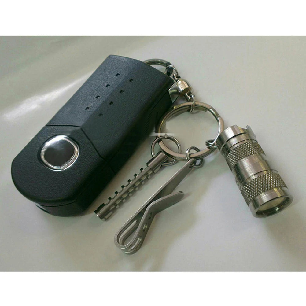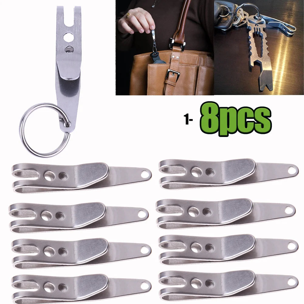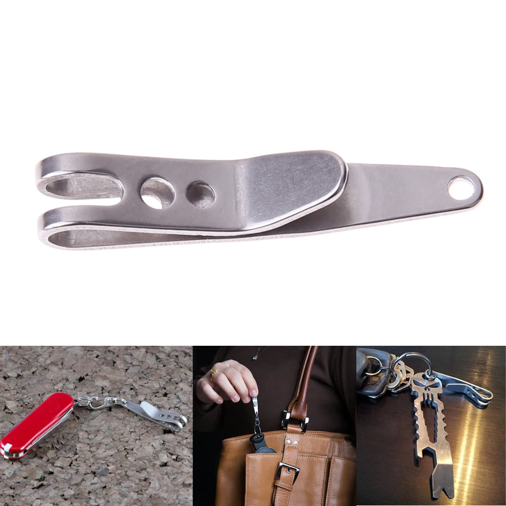 100% brand new and high quality Ultra strong elastic and rust protection Strong and durable to use with 301 stainless steel material Easy to carry which you can clip on your bag interlayer Equipped with manganese steel ring for hanging objects Bright finish and circular arc chamfering technology without hurting your hand Suitable for hanging some EDC items, like keys, flashlight, Swiss army knife, etc. An indispensable item to your daily life Specification: Material: 301 Stainless steel Weight: 4g Total Size (L*W*T): 38 * 7 * 1mm