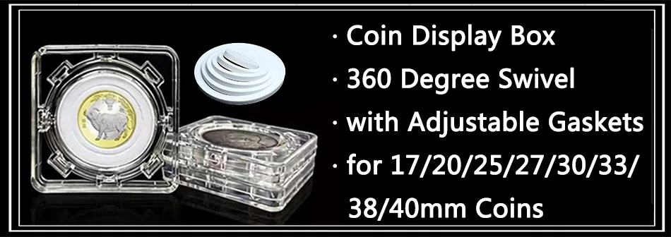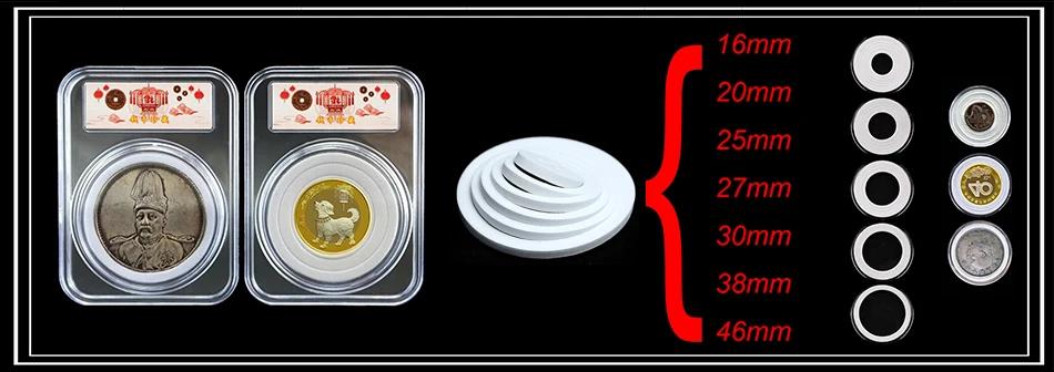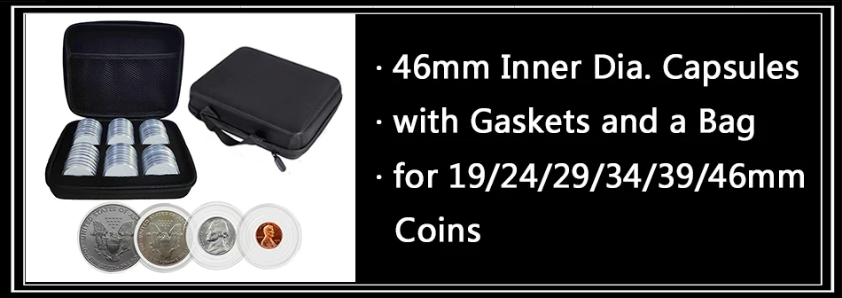 The coin capsule is 40mm in inner diameter; comes with a foam gasket which can be adjusted to suit for coins with 17mm/20mm/25mm/27mm/30mm/33mm/38mm/40mm diameter.